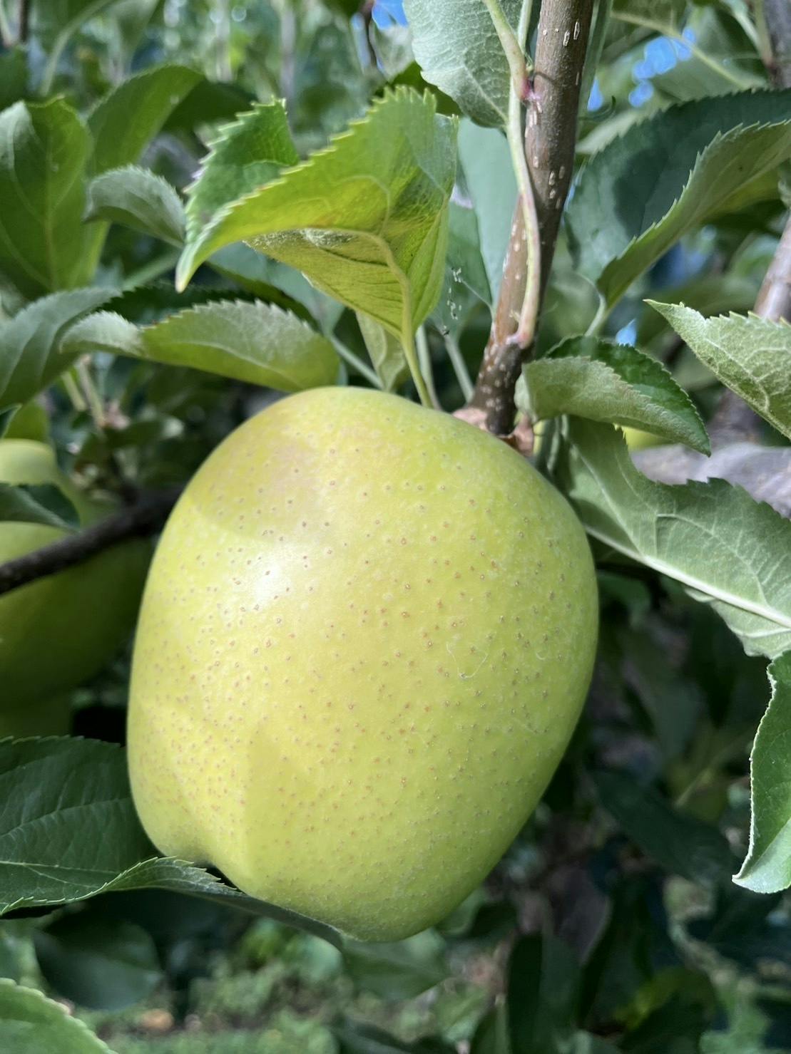 こんにちは。龍ノ口りんご園です。プロジェクト終了まであと1日。現在の達成率は1189%です。沢山のご支援本当にありがとうございます。今回は、リターンの中から“ふじ”を紹介します。“ふじ”は、日本で最も多く栽培されている、代表的なりんごです。11月上旬~中旬に収穫期を迎える品種で、酸味と甘みのバランスがよいりんごです。硬めの果肉で、生食の他にアップルパイや焼きりんごなどお菓子作りにも向いています。“ふじ”のうち、美味しさをキープしつつ、冷蔵倉庫での貯蔵性を高めるために果実袋をかけて育てたものを「有袋ふじ」、果実に日光を当てて味を乗せて栽培したものを「サンふじ」と呼び、龍ノ口りんご園では両方の栽培方法に取り組んでいます。皆様には、味を乗せた「サンふじ」をお届けします。8月30日現在、横径55mmほどに成長しています。収穫、お届けまでもうしばらくお待ちください。