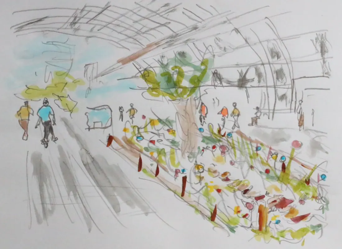 コンコース上にお花の咲く庭を作ります。
