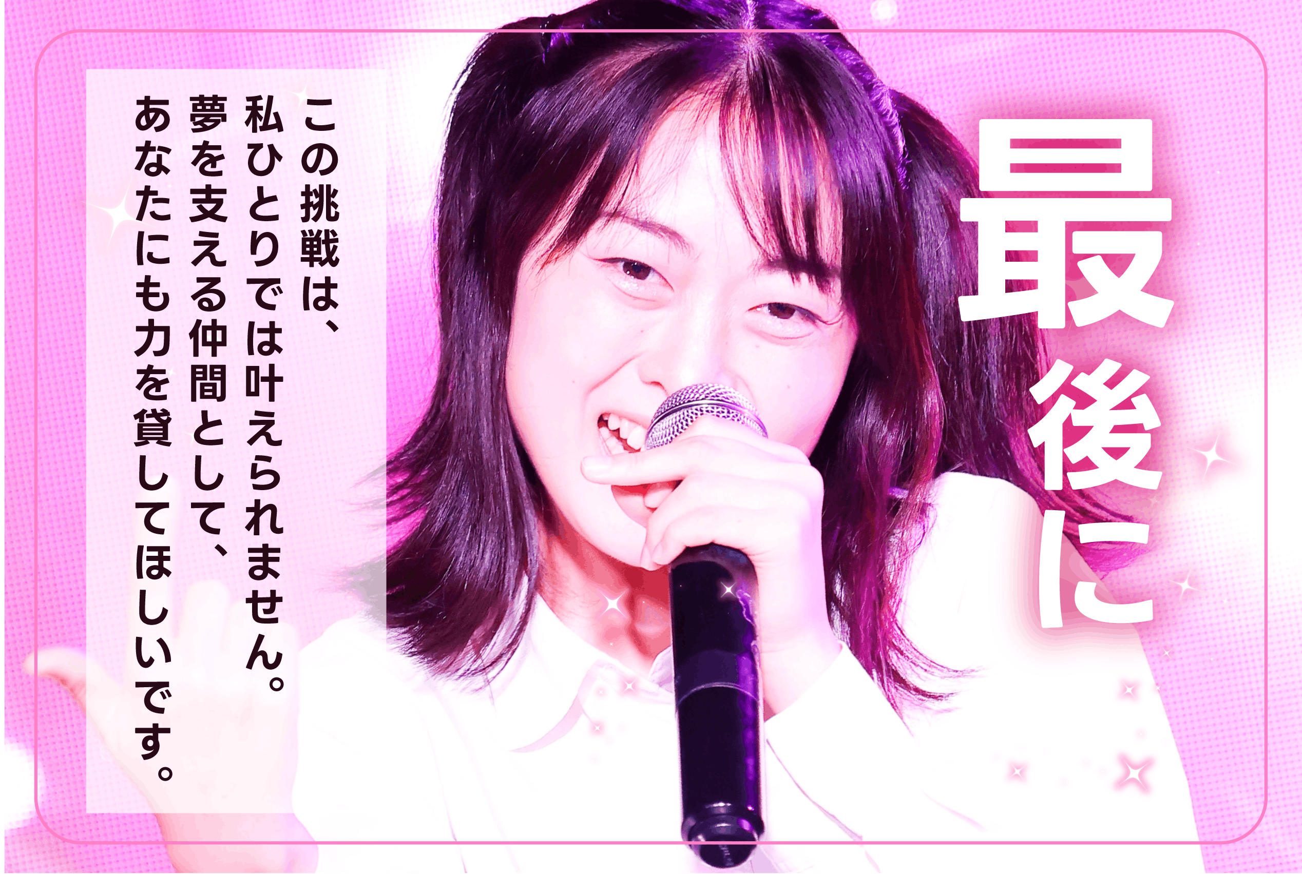 簡潔にご説明しますと、アイドル時代に出来なかった生誕祭の実施、物販、営業案件の受注がメインのリターンになります。