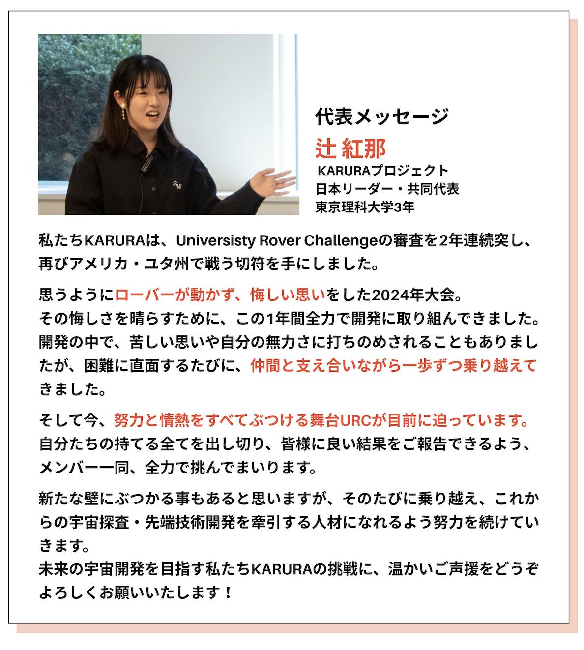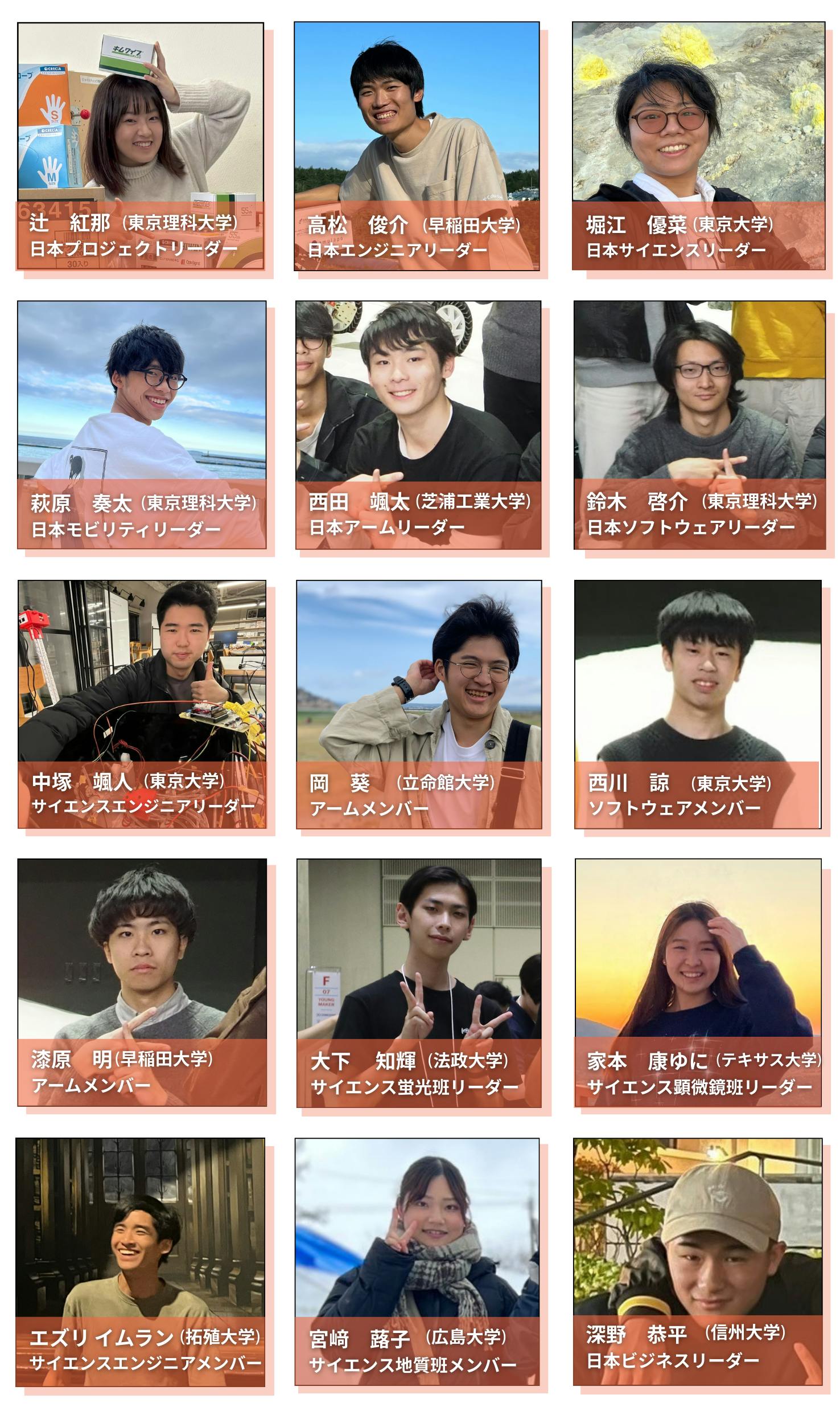 同じ志を持った学生が国を超えたチームを作り火星ローバーの製作に挑戦する。そして早くからグローバルな宇宙開発を経験した私たちが、将来の世界の宇宙開発を担っていきたいと考えています。