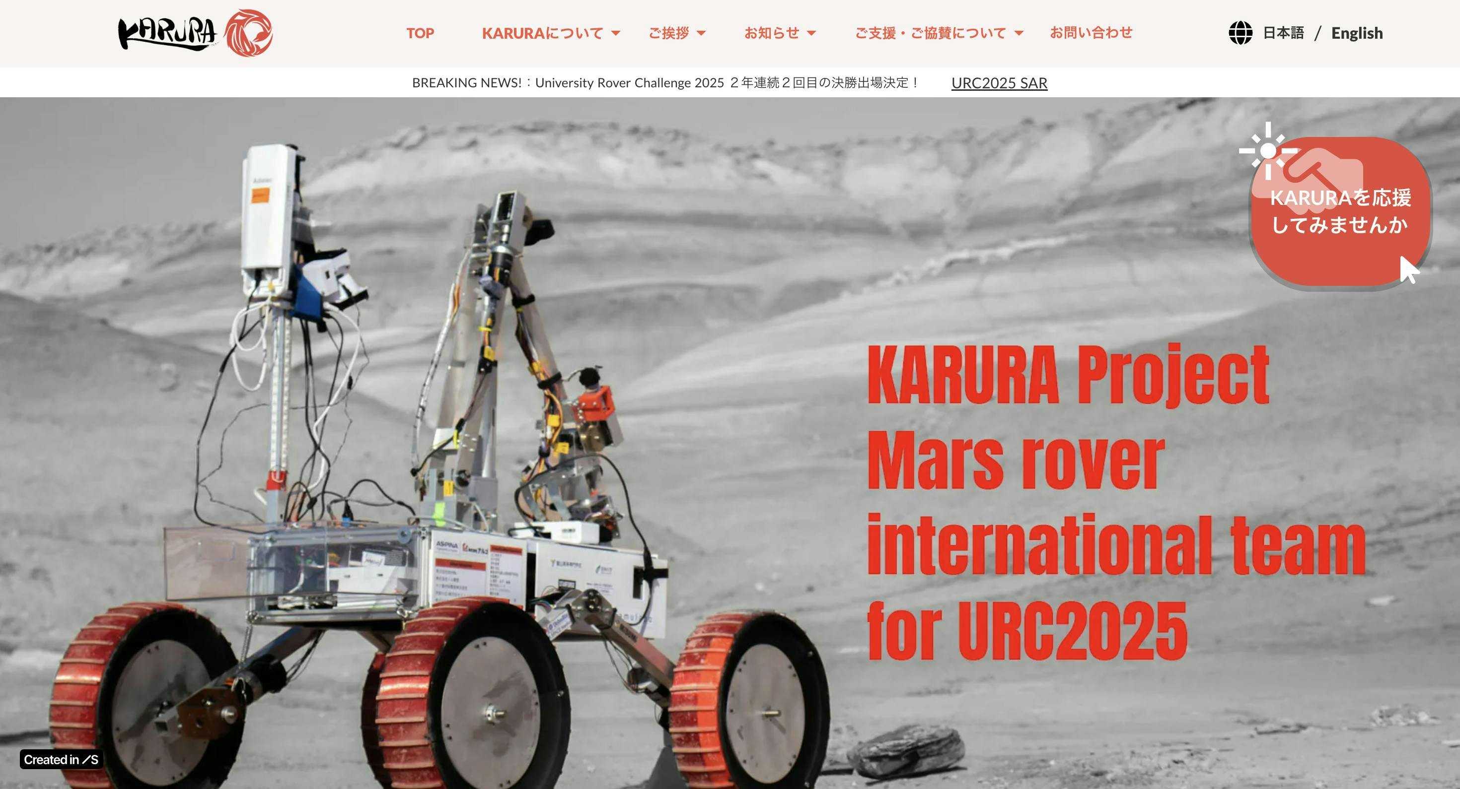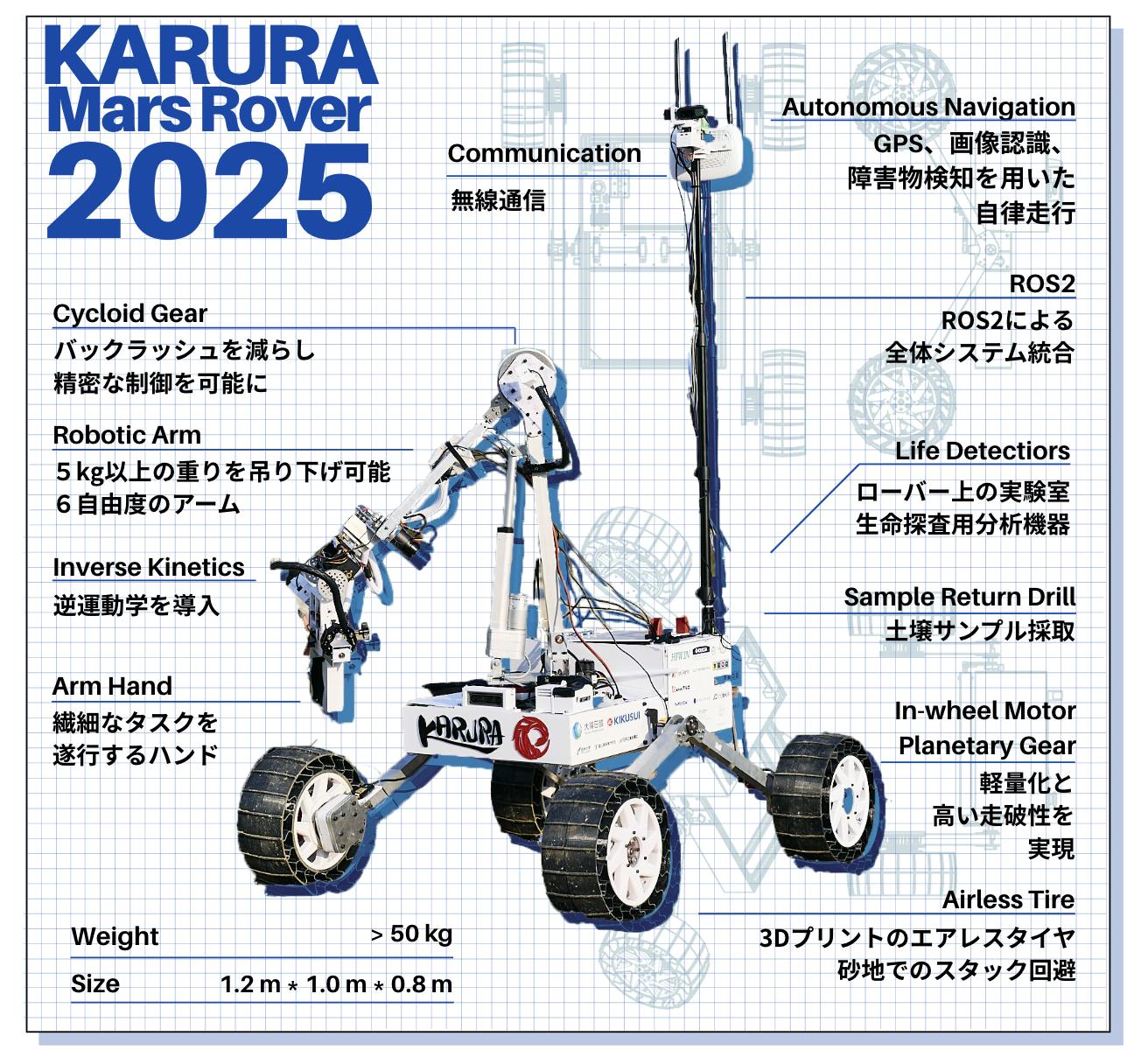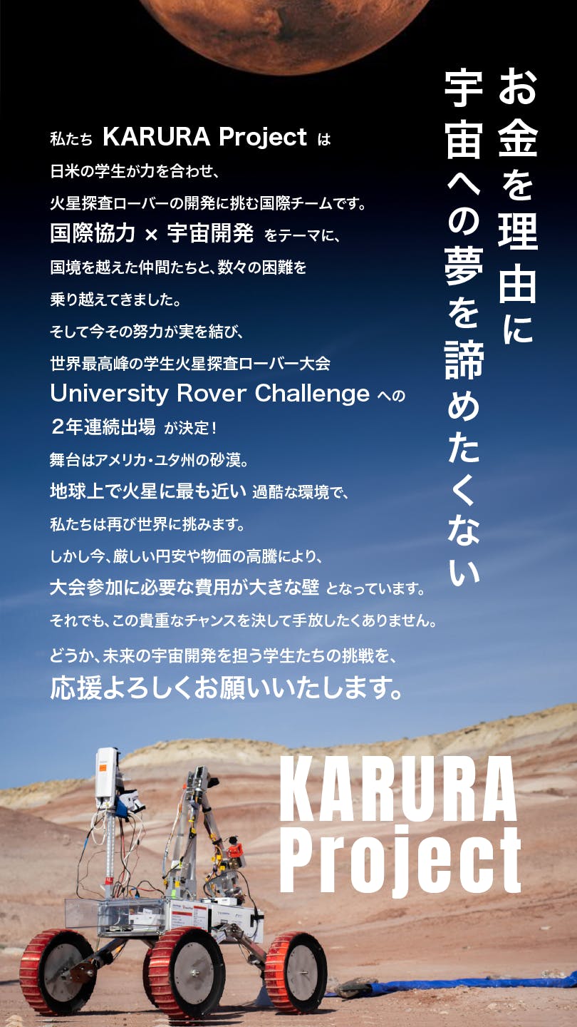 私たちKARURAプロジェクトは、宇宙探査やロボット開発を志す学生たちが、日本全国やアメリカから集まり、模擬火星探査ローバーの開発に取り組んでいる学生団体です。