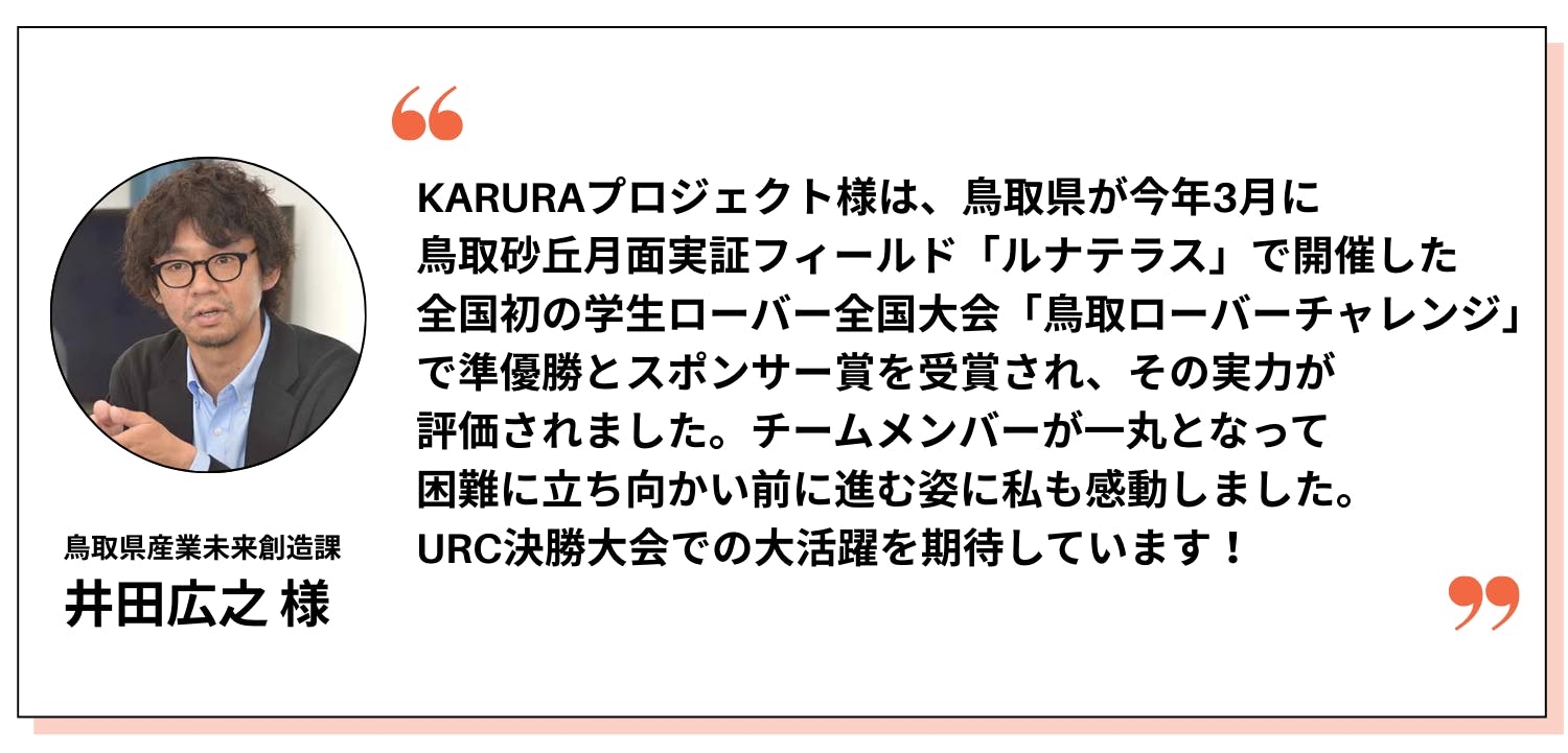 2022年のチーム結成から約2年半、ローバーの設計・機体製作・回路設計・ソフトウェア開発・科学探査・現地での運用まで、すべてを学生の手で実現。発足1年半の初エントリーながらURC2024に出場を果たしたほか、JAXA「宇宙探査フィールド」や鳥取県月面実証フィールド「ルナテラス」での実証実験を行うなど、数多くのマイルストーンを達成してきました。このような実地での経験を通して、“実践的な技術力”と“チームで動く力”を磨いてきました。