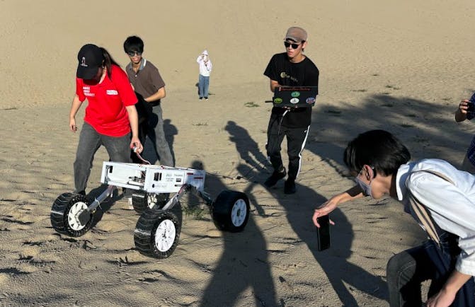 ↑ローバーの実験は屋外で行うことも多いです。屋外での実験は電源や時間の制約が多く、効率的なマネジメントが求められます。