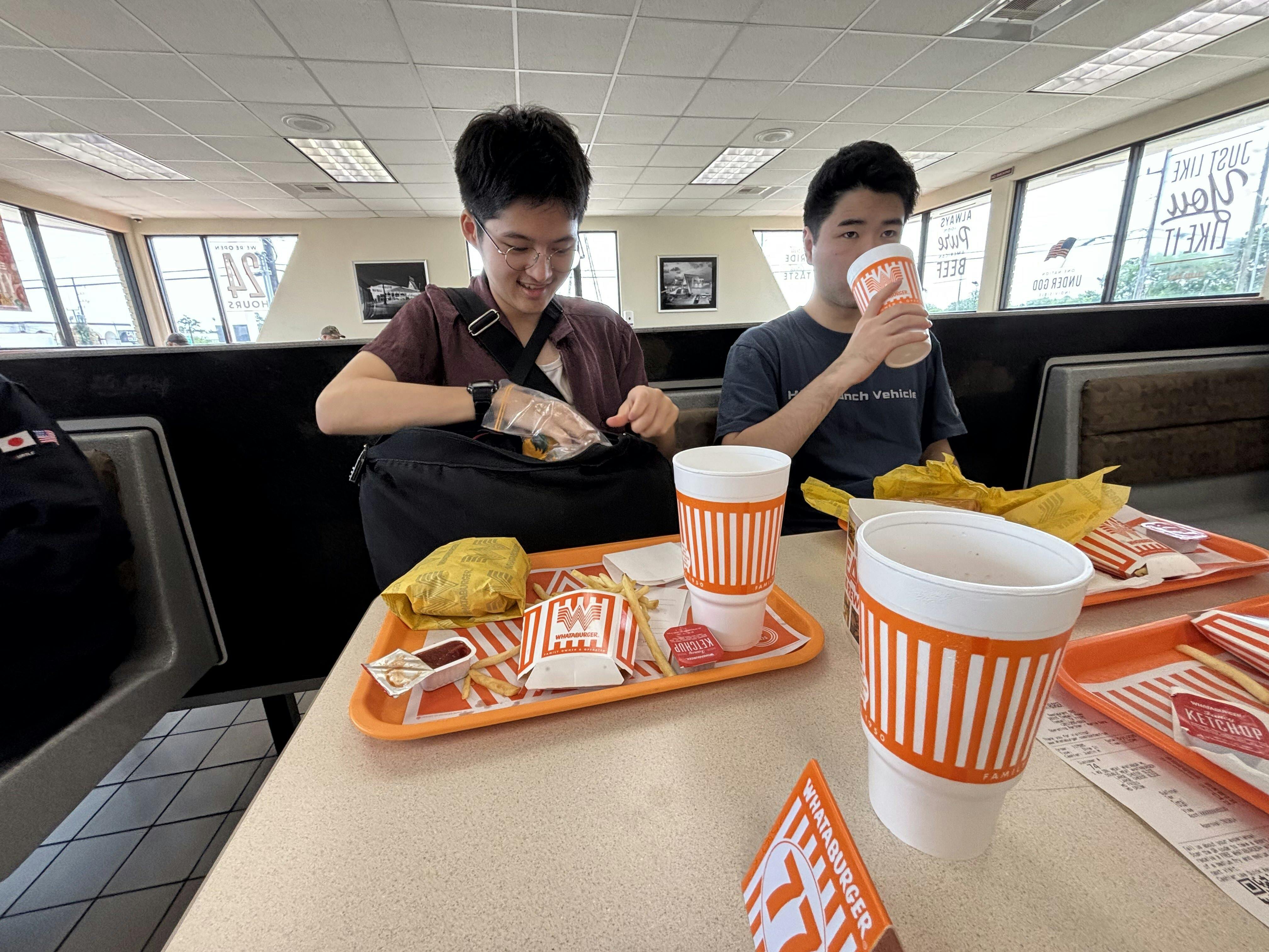 ヒューストンに到着し、USメンバーがピックアップをしてくれたあと、テキサス名物のWhataburgerに連れて行ってくれました!そのあとはTexas A&M Universityの敷地内にあるテキサス滞在の作業場へ向かいました。日本から持ってきたローバーの機体の組み立てを早急に終わらせます。
