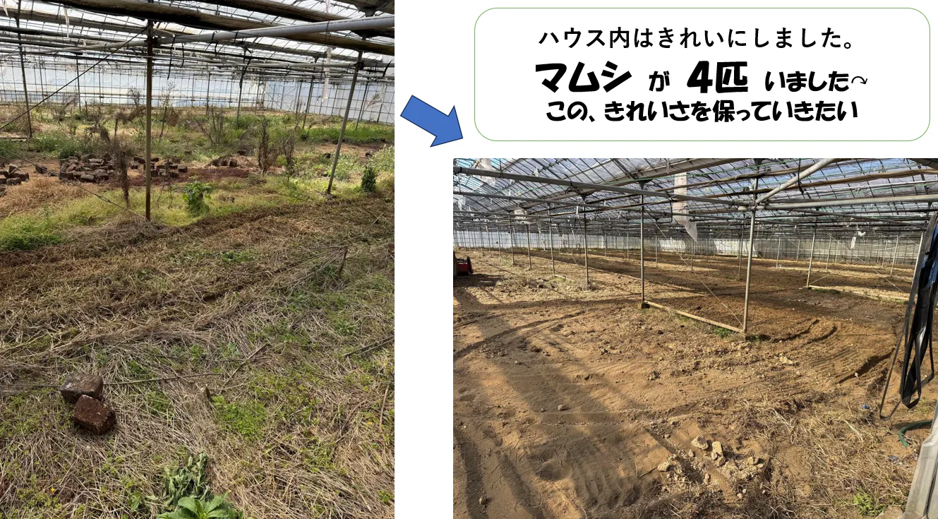 450坪のハウス内は何とかきれいにしました!