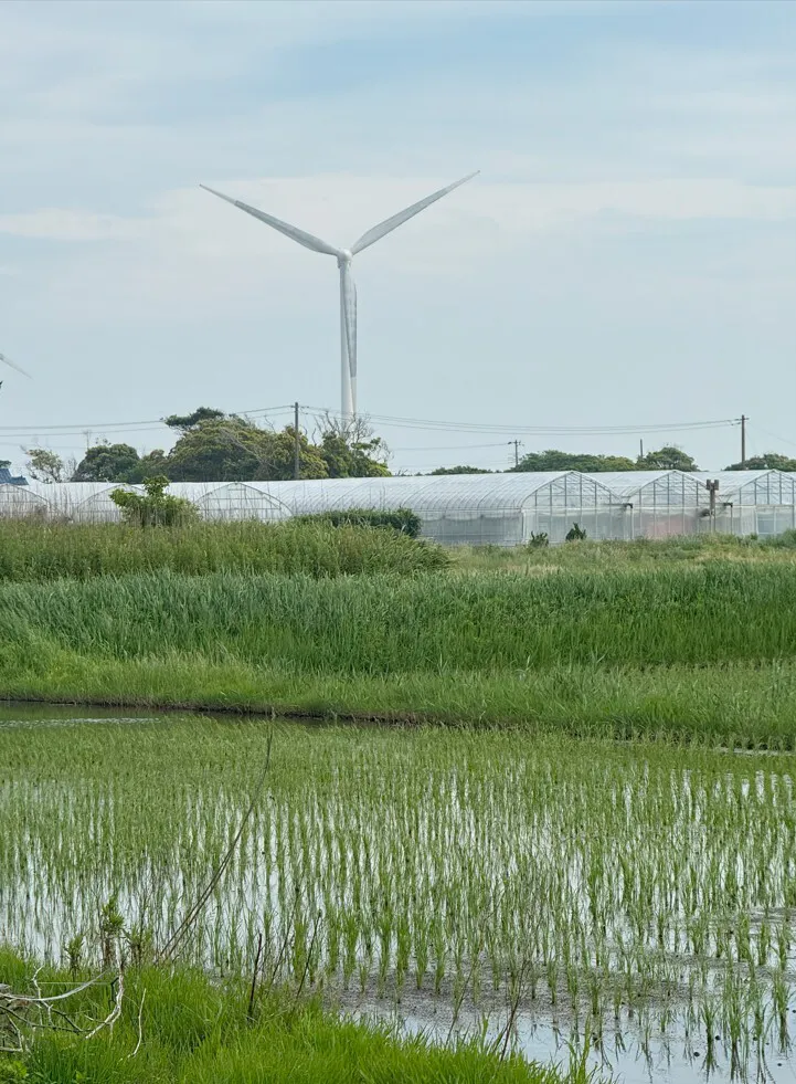 波崎掘り下げた米は、この地域でお米を作るにあたり考えられて栽培されたお米です。砂地である神栖地域をもっと知る上でも食べて頂きたいお米です。 写真は、私の自宅裏の田んぼの様子です。5月11日に田植えをしました。神栖市ならではの、風力発電が良く見えます。田んぼが深いので、トラクター運転も大変なんですよ!