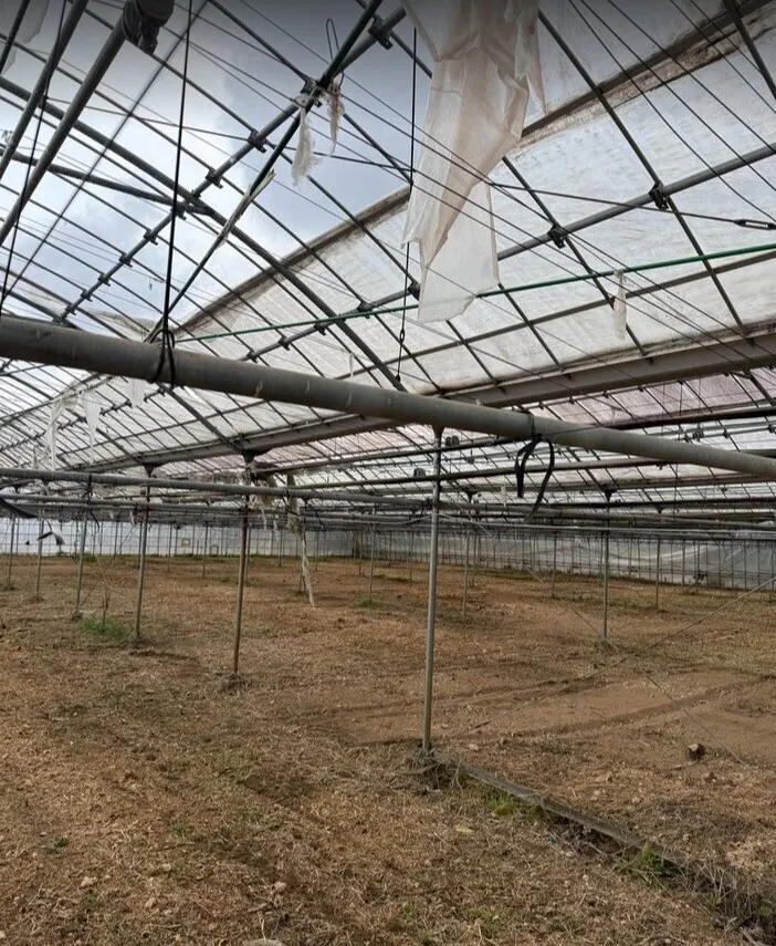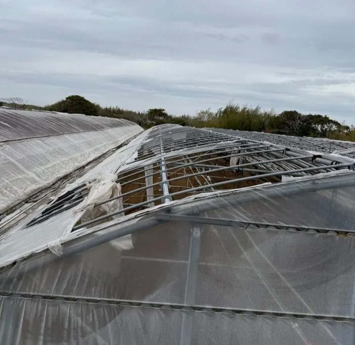 右のハウスはボロボロ。修繕が必要