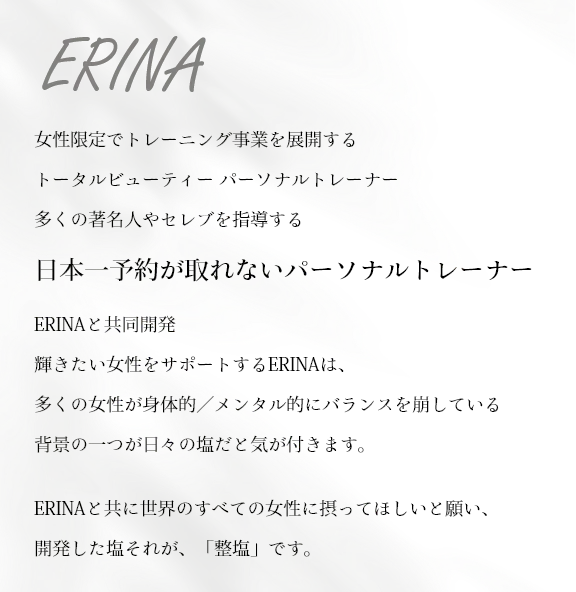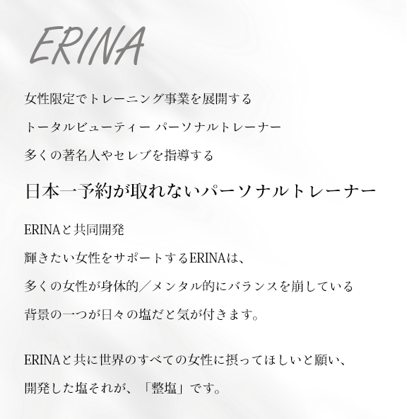 私たちの味方であり、美と健康のパートナーとなるのがこの"整塩"です。