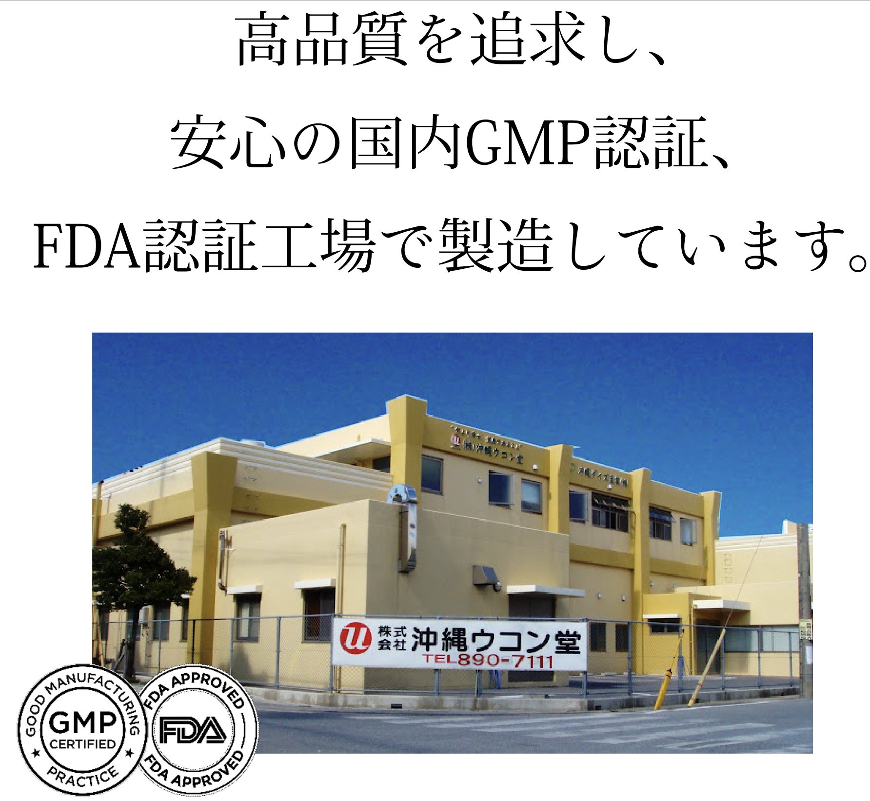 高品質で安全なサプリメントをご提供できるよう、厳しい品質管理基準を満たしている日本国内のGMP認定工場で製造しています。