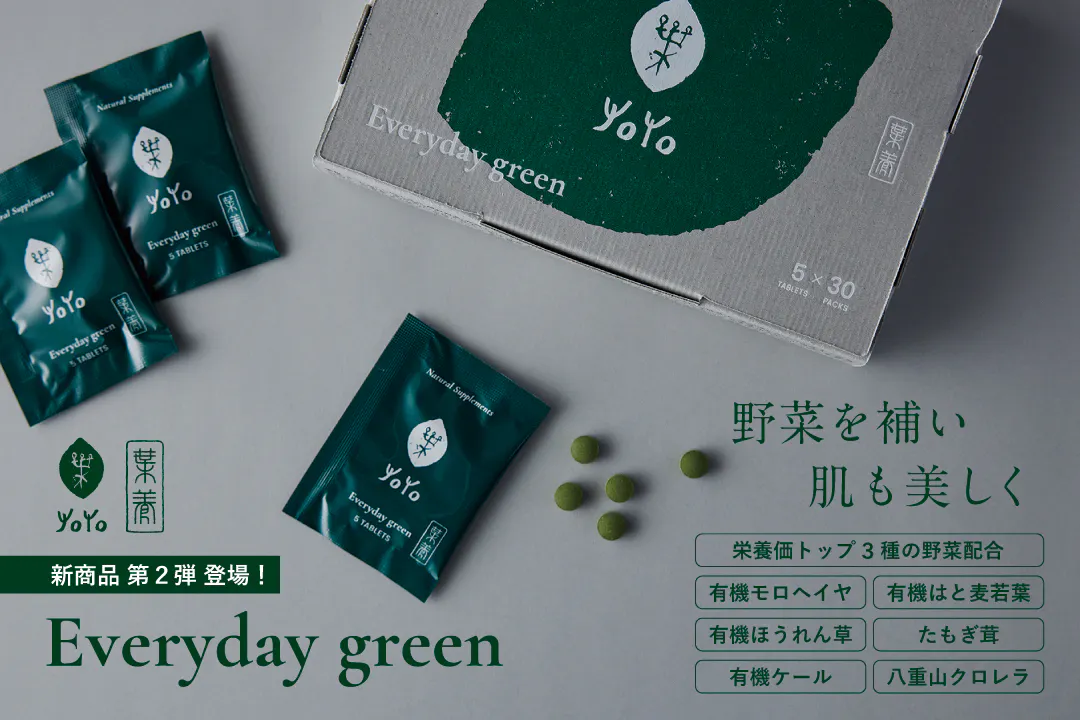 2025/05/09 12:00葉養(ようよう)第二弾 新商品『Everyday green』の登場です!こちらはClear brightと同じく有機モロヘイヤをメインに、有機ほうれん草、有機ケールの3種の野菜配合に、現代人が不足しがちな栄養素のサポートに特化し、昔ながらの“美肌食材”と呼ばれる国産素材(タモギダケ、ハト麦若葉、ヤエヤマクロレラ)起用した普段使いのベースサプリメントになります。こちらももちろん、無農薬、無添加、次亜塩素酸水不使用、低温乾燥と、信頼できる全国でも限られた農園で育てられた野菜たちです。紫外線対策は特に気にしないよ!という男性の方や女性にも!普段の野菜不足のサポートとしてぜひ取り入れていただけると嬉しいです。クラウドファンディング中はお求めやすい金額となっておりますのでぜひこの機会に。よろしくお願い致します。 もっと見る葉養の魅力とは 共同開発者ロゴスコーポレーション様より