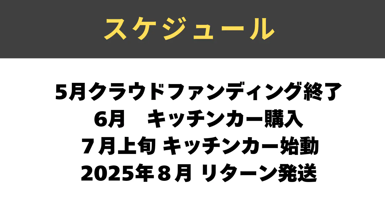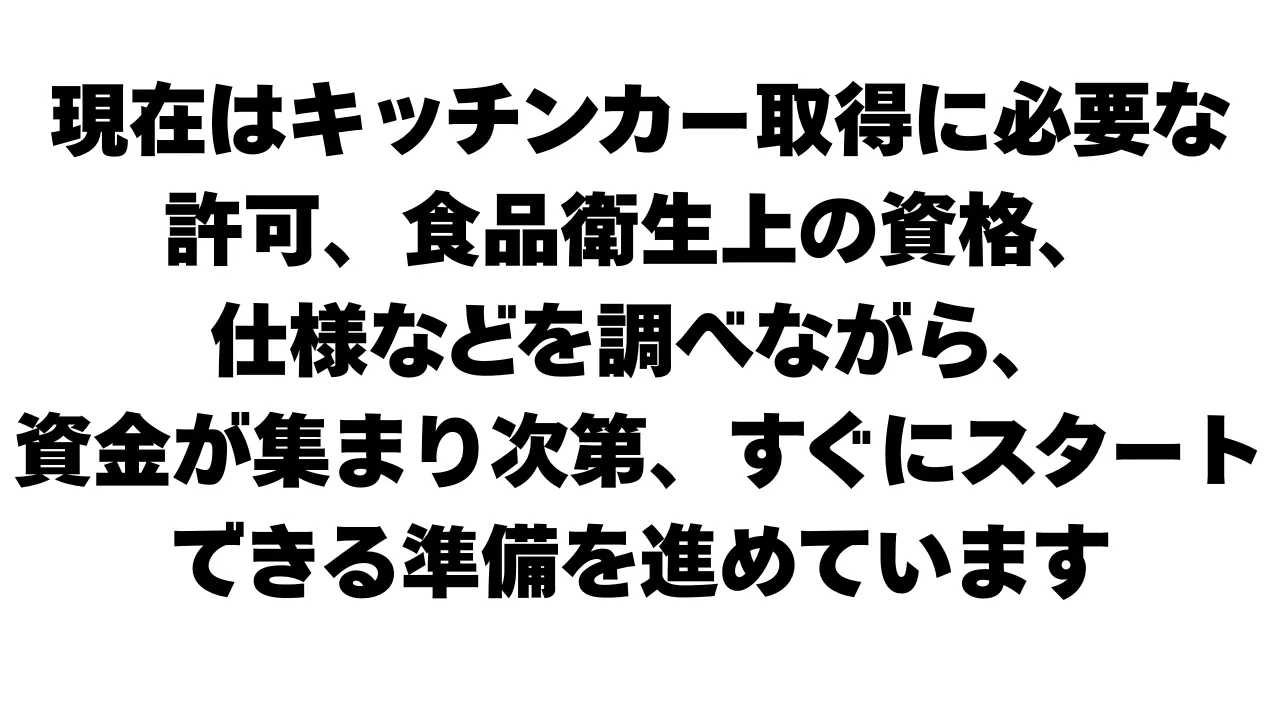 2025/07/24 04:51この度、良い車とご縁がありましたので皆様からのご支援を使わせていただいてキッチンカーを購入しましたー!黒のスタイリッシュ、シンプルなデザインです。ここでベーグルやベーグルサンド、、、色々な料理を提供できる!と思うとワクワクが止まりません・・・!内装、外装はこれからで、現在は納車に向けて整備を進めています。また、納車後にご報告させていただきます。 もっと見る
