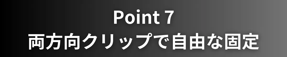 本体には両方向対応のクリップを搭載しており、上下どちらの向きでもしっかり固定できます。