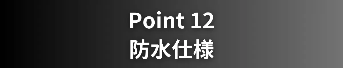 IP65相当の防水・防塵仕様で、雨の日やほこりの多い場所でも安心して使用できます。