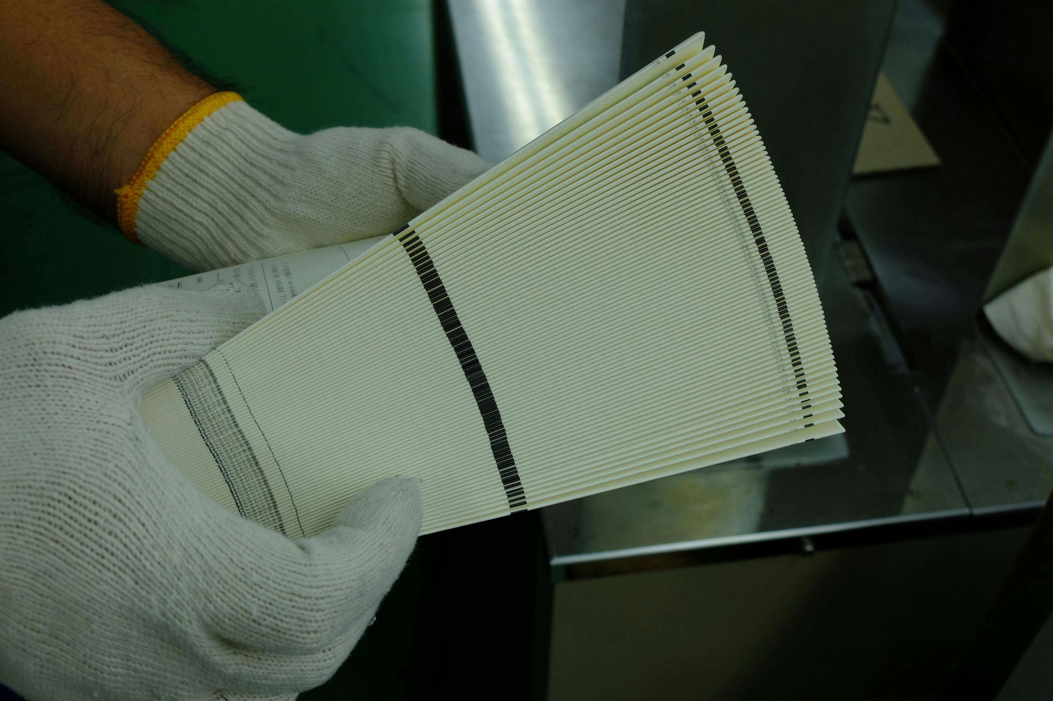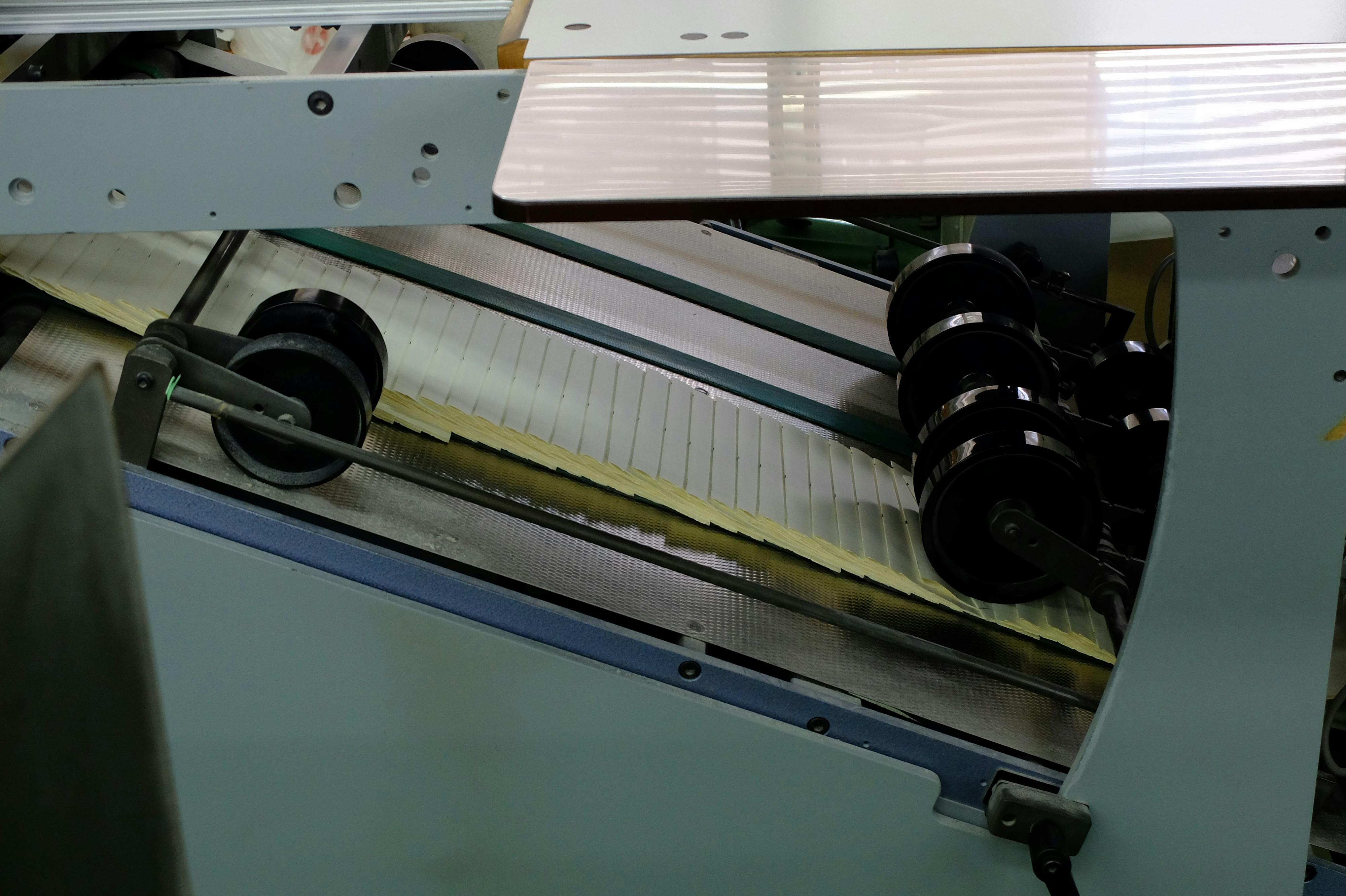 この「折り」作業は、製本の前段階としてとても重要な工程。 職人さんたちが一つひとつ確認しながら、丁寧に仕上げてくださっています。
