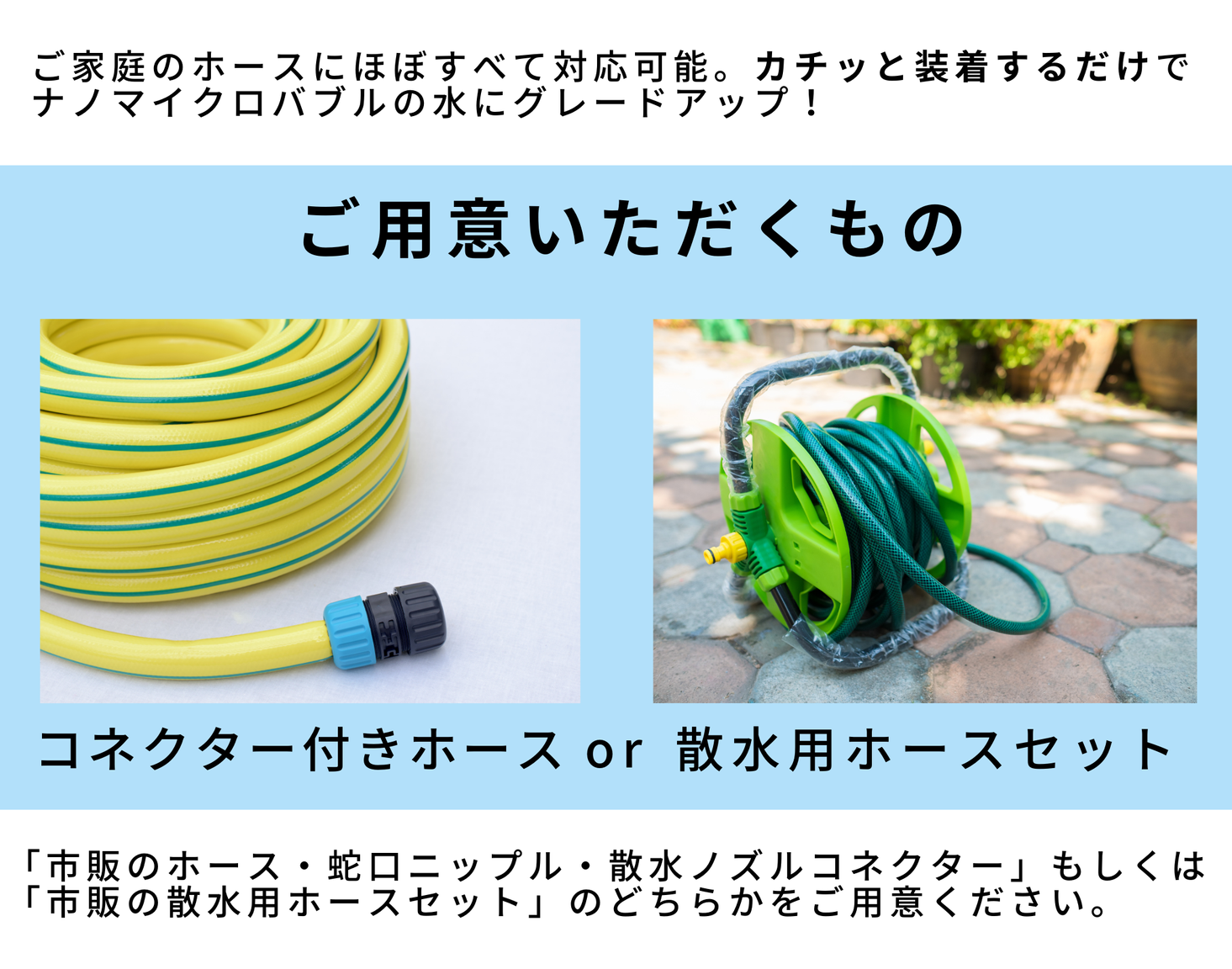 また、市販の散水ノズルコネクターや一般的なホースセットがあれば、届いたその日からすぐに使えるのも◎