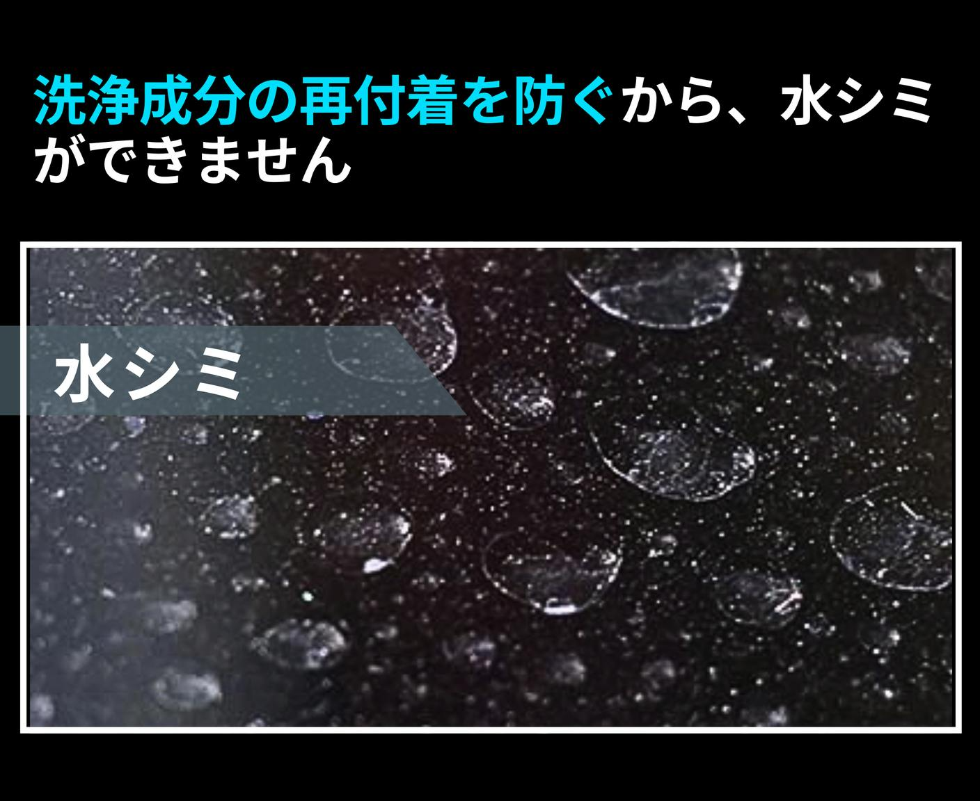 化学成分配合のカーシャンプーは、洗浄力が確かに魅力的ですが、泡洗車に費やす時間・労力・水シミのリスクも含めて比較すると、当アイテムの洗浄力で十分に満足いただけると思います。