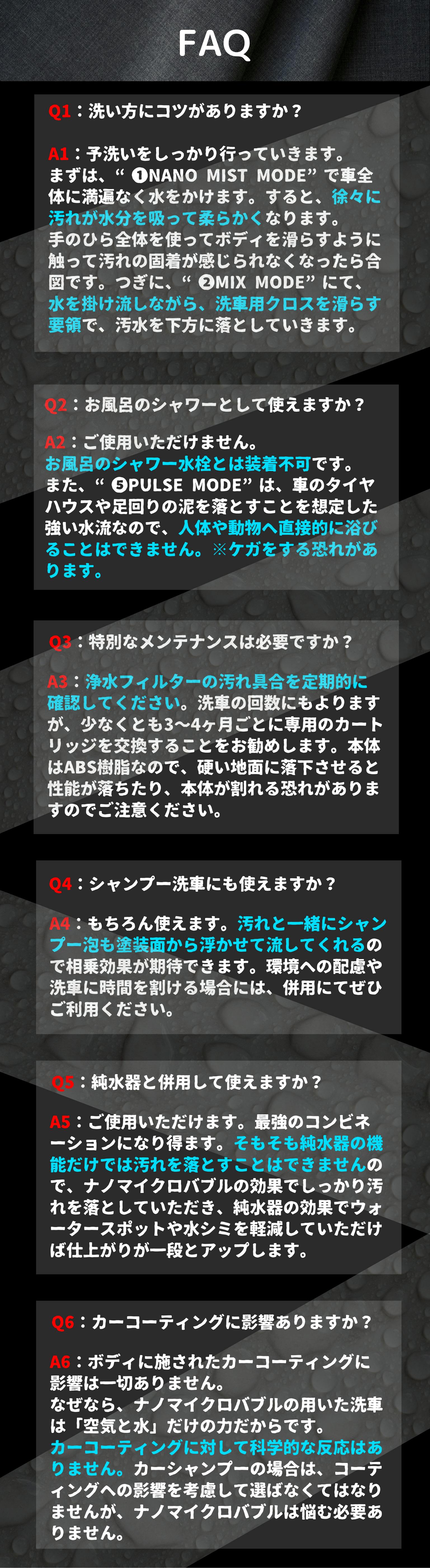 ・洗車以外の目的でのご使用に関しての問い合わせには応じかねますのでご了承ください。
