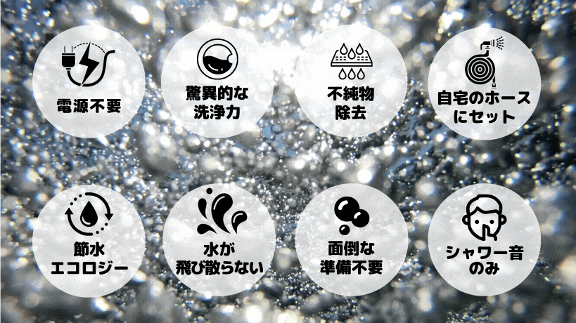 そんな中、自宅のお風呂で使っていた最新式のナノバブルシャワーは、ボディソープなしでも肌が綺麗になることを目の当たりにし、この技術から着想を得て開発に着手したのです。