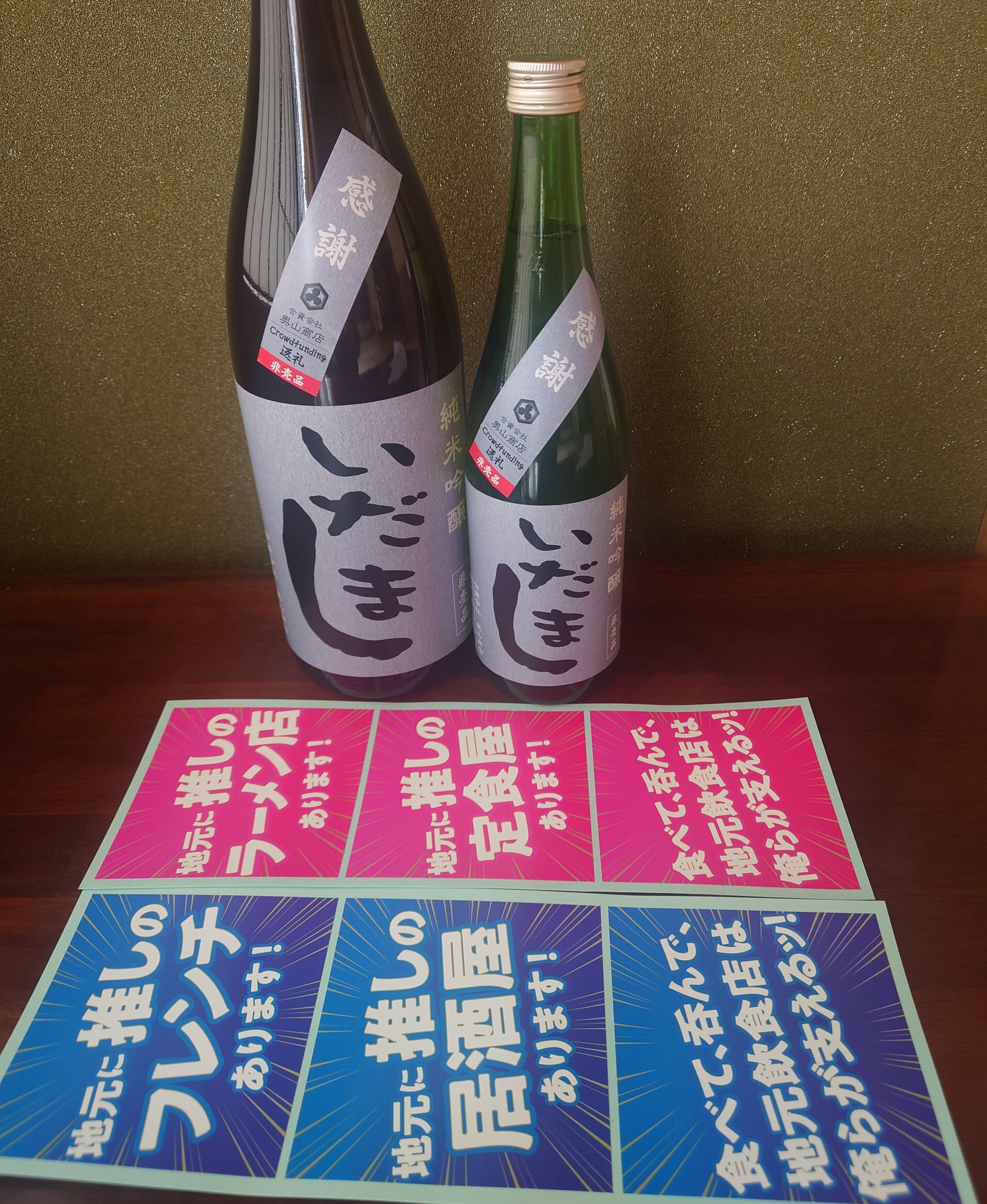 クラウドファンディング公開初日より、ご支援やお気に入り登録、SNSでの拡散など多くの方にご協力頂けております事、感謝申し上げます。リターンにご用意する飲食店応援ステッカーやクラウドファンディングでのリターン限定の日本酒ラベルの見本が出来上がってきましたので画像にてご報告致します。まだサンプルの段階で。デザインや文言、商品の材質などクラウドファンディング終了後にリターン発送の期限までにはしっかりと調整して皆様にお届け出来たらと考えております。どうぞ募集終了の最終日までこれから宜しくお願い致します!