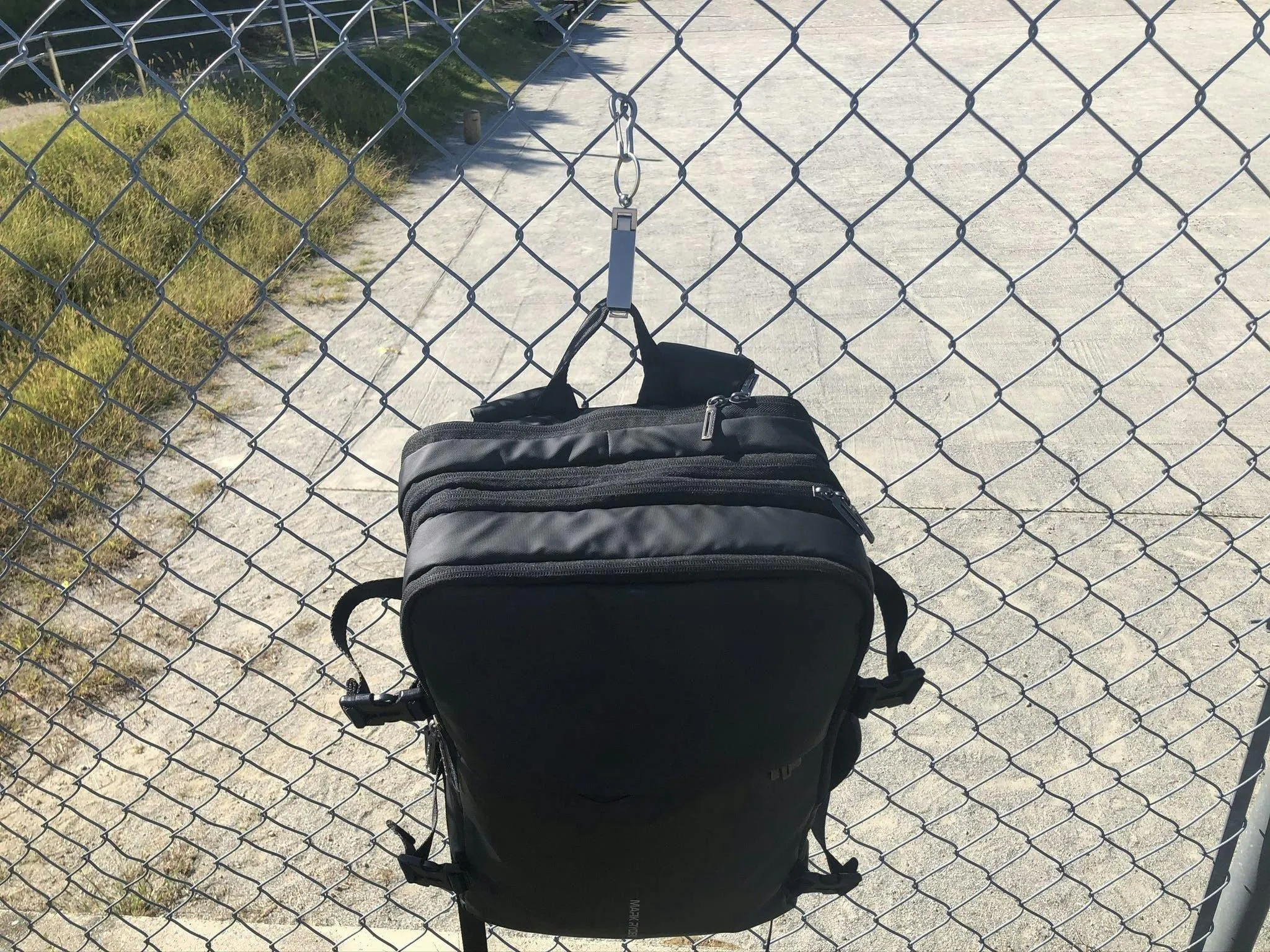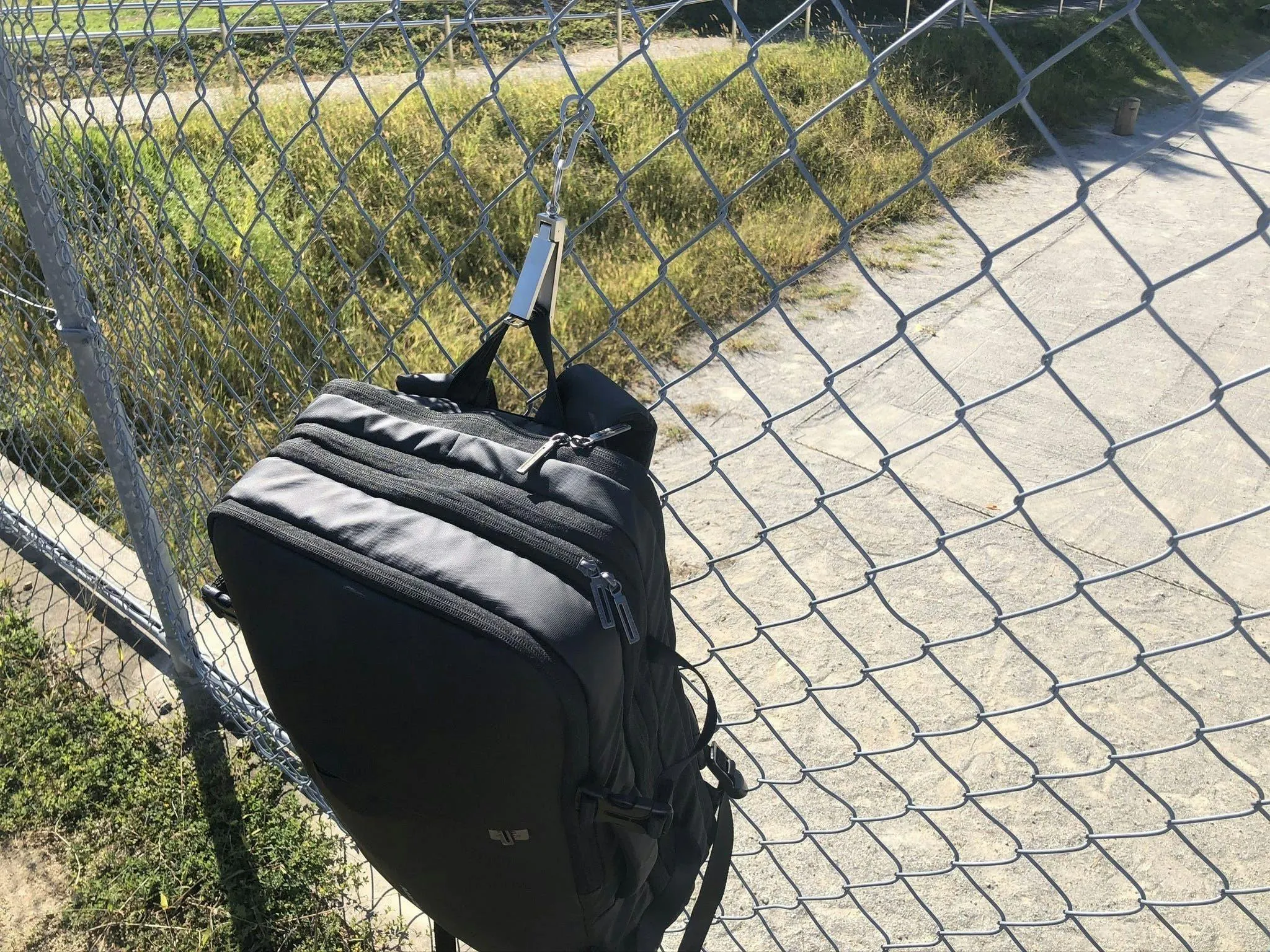 公園や外で荷物の置き場所がない… そのような時はフェンスなどに吊るして便利フックとして使えます。