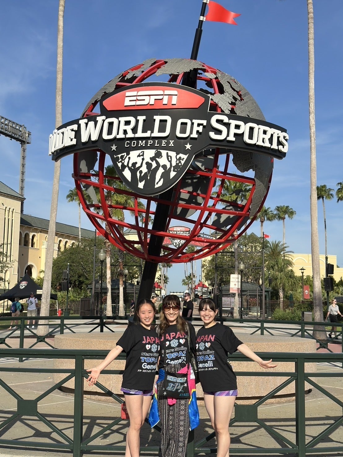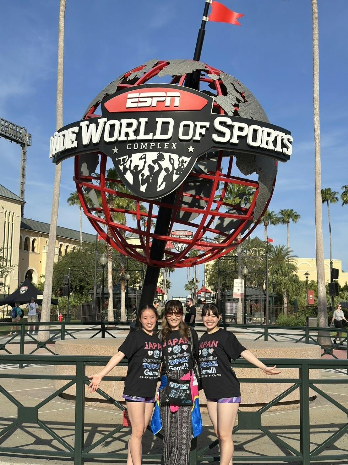 【大会レポート】大会前日の夜。疲れもピークに達するなか、人生で初めて「アイスバス」に挑戦しました。あまりの冷たさと痛みに、思わず絶叫……!でも、そのおかげか、体も心もスッキリとリフレッシュできた気がします。ついに迎えた大会当日。朝はいつも通り、朝練からスタートしました。疲れを残さないように、軽めのトレーニングで体を調整し、その後は部屋で少し休憩。午前の練習では、フリ合わせを行い本番に向けて再度確認をしました。そして、メイクをしユニフォームに着替え、いざ会場へ!!!到着した本番会場の周辺は、まるでお祭りのような熱気。各国チームの音源が大音量で流れ、選手たちの笑顔弾けるウォーミングアップ風景が広がっていました。ここ数日、この会場でその風景を楽しんでいた私たち。でも、今日は“本番”――。楽しむ気持ちよりも緊張の方が強く、海外選手の姿に刺激を受けながら、私たちもできる限りの準備を整えようと再びアップと最終の確認を重ねました。ウォーミングアップ会場へ移動すると、なんと……!憧れのアメリカ代表選手が目の前に!!「同じ舞台に立てるんだ」――。その瞬間、喜びと緊張が一気に押し寄せてきて、胸が高鳴りました。「この瞬間を楽しみたい。でも、結果も出したい!」そんな想いを胸に、温かい「ニッポン」コールに背中を押されながら、いよいよ本番のステージへ。いざ始まると、あっという間の1分半。最後の瞬間まで全力で!!心から楽しんで踊り切ることができました。……とはいえ、悔しいミスもあって、反省点も残る結果に。でも、それすらも今では、大切な経験として心に刻まれています。そして迎えた表彰式。「JAPANーーー!」と呼ばれたあの瞬間は、今でも鮮明に覚えています。思わず叫んでしまうほどの驚きと喜び。アメリカ代表、ウクライナ代表と同じ舞台に立っている並んでいる……まるで夢の中のような時間でした。結果は、第3位・銅メダル。そんな素晴らしい結果までいただけて……本当に幸せで、忘れられない一日となりました。「また世界大会の舞台に立ちたい」「また絶対に戻って来よう」達成感とともに、たくさんのパワーをもらえた1週間でした。こんな素晴らしい経験ができたことに、心から感謝しています。今回の大会を通して、改めて多くの方に支えられていることを実感しました。応援してくださったすべての皆さまに、心から「ありがとう」を伝えたいです。大会で感じた喜びも、悔しさも、すべてを次の成長につなげていきます。本当に、本当に楽しかったです!!!応援、ありがとうございました!!