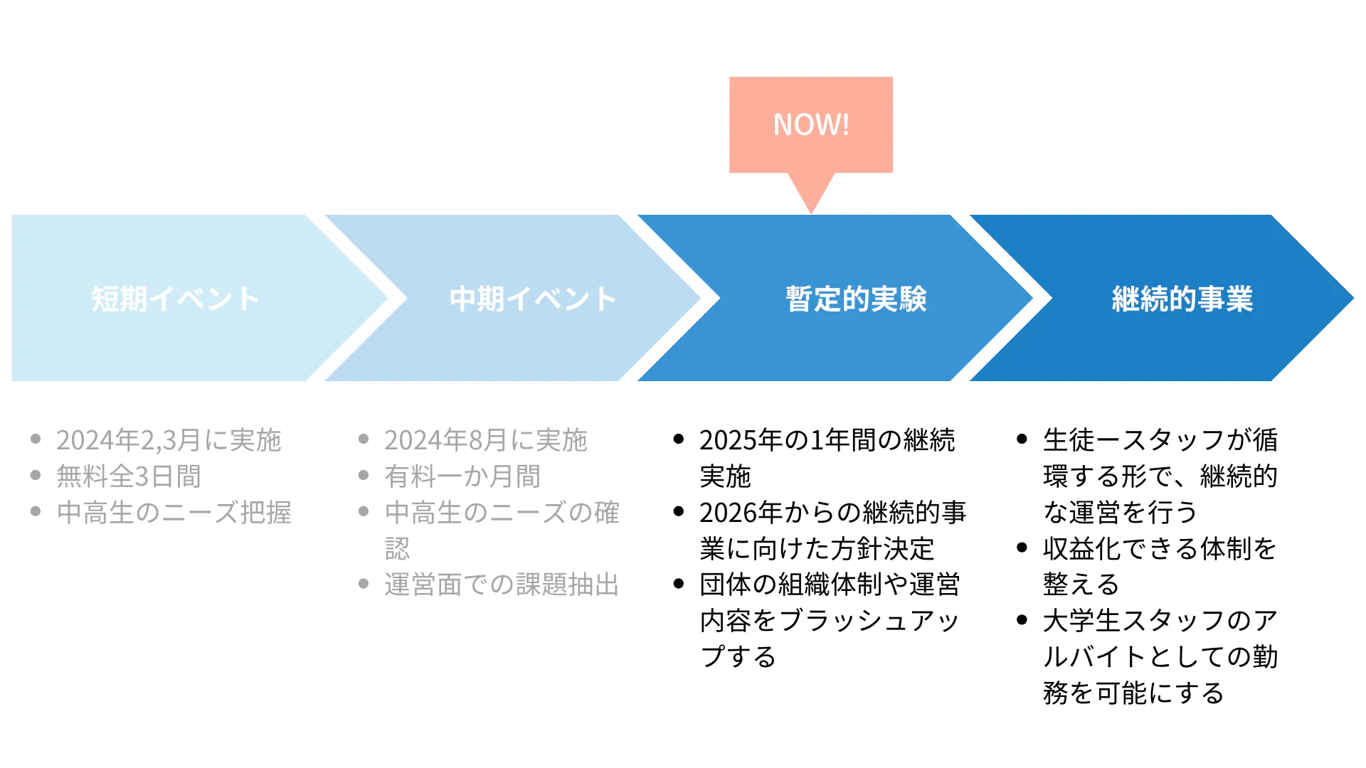2025年度1年間の継続実施の内容を踏まえて、2026年度以降の収益化できる継続的事業に発展させていく足がかりとします。