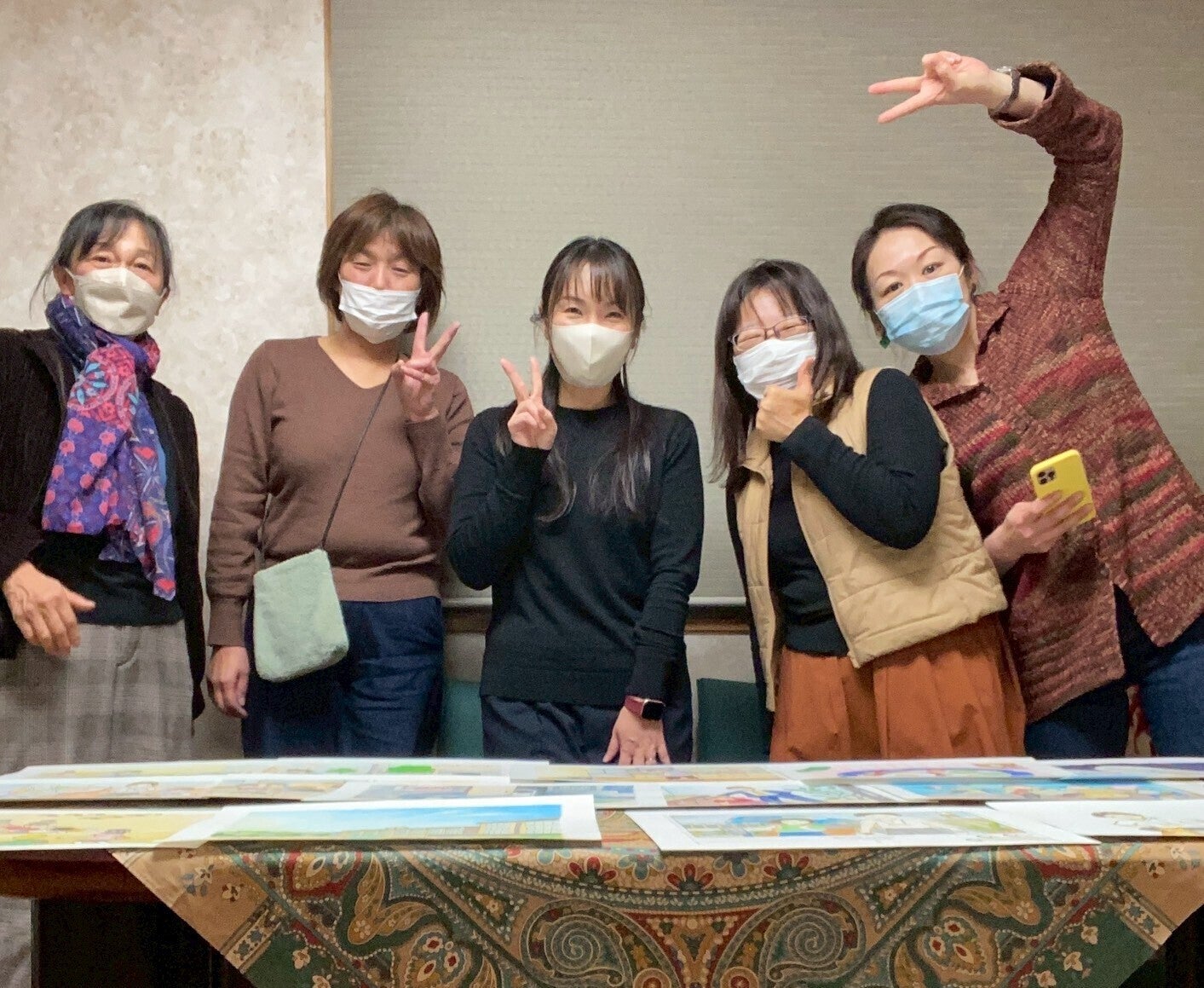 2か月以上ご報告の間隔が空いてしまいました。絵本プロジェクトメンバーで現役スクールソーシャルワーカーのかとうとしえです。去る12月19日(金)に、三重県内の児童養護施設に、私たちの絵本「タナカさんとボクのくつ」が寄贈される場面に、絵本プロジェクトのメンバーが立ち会わせて頂きました。話は少しややこしいのですが、もともと絵本プロジェクトの寄贈先の1つであった一般社団法人三重県社会福祉士会が、三重県内の児童養護施設に絵本を寄贈することになり、この寄贈はNPO法人子どもの自立を支援する会・くれよん様の仲介で実現したものでした。くれよん様は、児童養護施設で暮らすこどもたちの未来を支援する団体で、「社会福祉士さんたちとかかわりを持ちたい」という思いがあり、偶然私たちのクラウドファンディングを見つけていただいて、この児童養護施設への寄贈のセッティングを行っていただいたのです。当日は、三重県児童養護施設協会自立支援部会の会議の前に、贈呈式を行わせて頂きました。児童養護施設にも社会福祉士は働いていますが、職員の中心はやはり保育士さんです。今回の会議にも、それぞれの施設の保育士の方々が出席されていましたので、三重県社会福祉士会の平井会長から、ぜひ社会福祉士資格の取得も!と、期待を込めたメッセージがありました。くれよん様からは、児童養護施設を退所したこどもたちの支援を、今後拡大していきたいと考えていらっしゃるとお話を伺いました。三重県社会福祉士会としても、今回のご縁をきっかけに、児童養護施設とのネットワークをさらに強固なものとするとともに、退所したこどもの自立支援にもできる範囲で協力したい意向を伝えました。もちろん、一人ひとりの社会福祉士が、こどもへの伴走支援にもっと目を向けていくべき課題であることも確認しました。今回は、私たちが絵本を寄贈した団体が、別の団体に絵本を贈呈する、という形でしたが、オリジナル絵本というツールが、職種を越えた新しい架け橋になることを予感させるひとときとなりました。余談ではありますが、NPO法人子どもの自立を支援する会・くれよんの監事様からは、「絵本を見た瞬間にデジタル描画でないことは一目で分かったけれど、まさかオール手描きとは!」と驚かれたことも印象的な出来事でした。私たちは絵本を描くと言ったら、何も検討せずに画用紙を買ってきていしまったのです。それは絵本作家さんの原画展が脳裏に残っていたからなのかな?とも思いました。(そもそもデジタルの作家さんは原画展をしないのかもしれませんが…)そして、私たちも図々しくも会場をお借りして原画を展示させていただきました。さすが保育士さん!原画にも興味津々で、丁寧に観てくださいました。絵本が強くするネットワークの可能性をみせていただいた一日になりました。関係者の皆様、ありがとうございました!