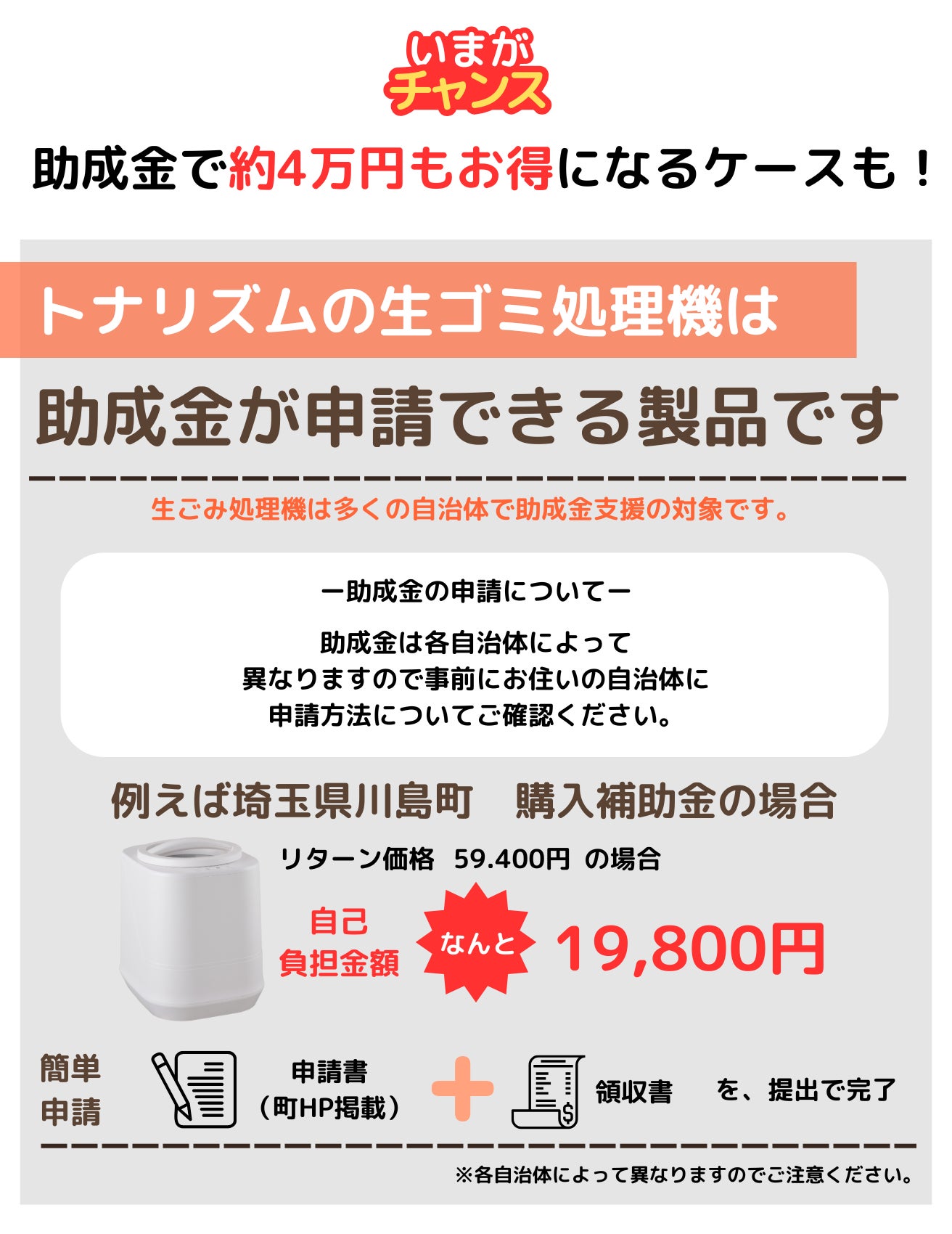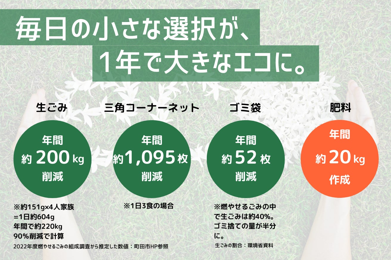 この生ごみ処理機一台で、1年間で約200キロの生ごみを削減し、約20kg分のたい肥が家庭から生まれます。