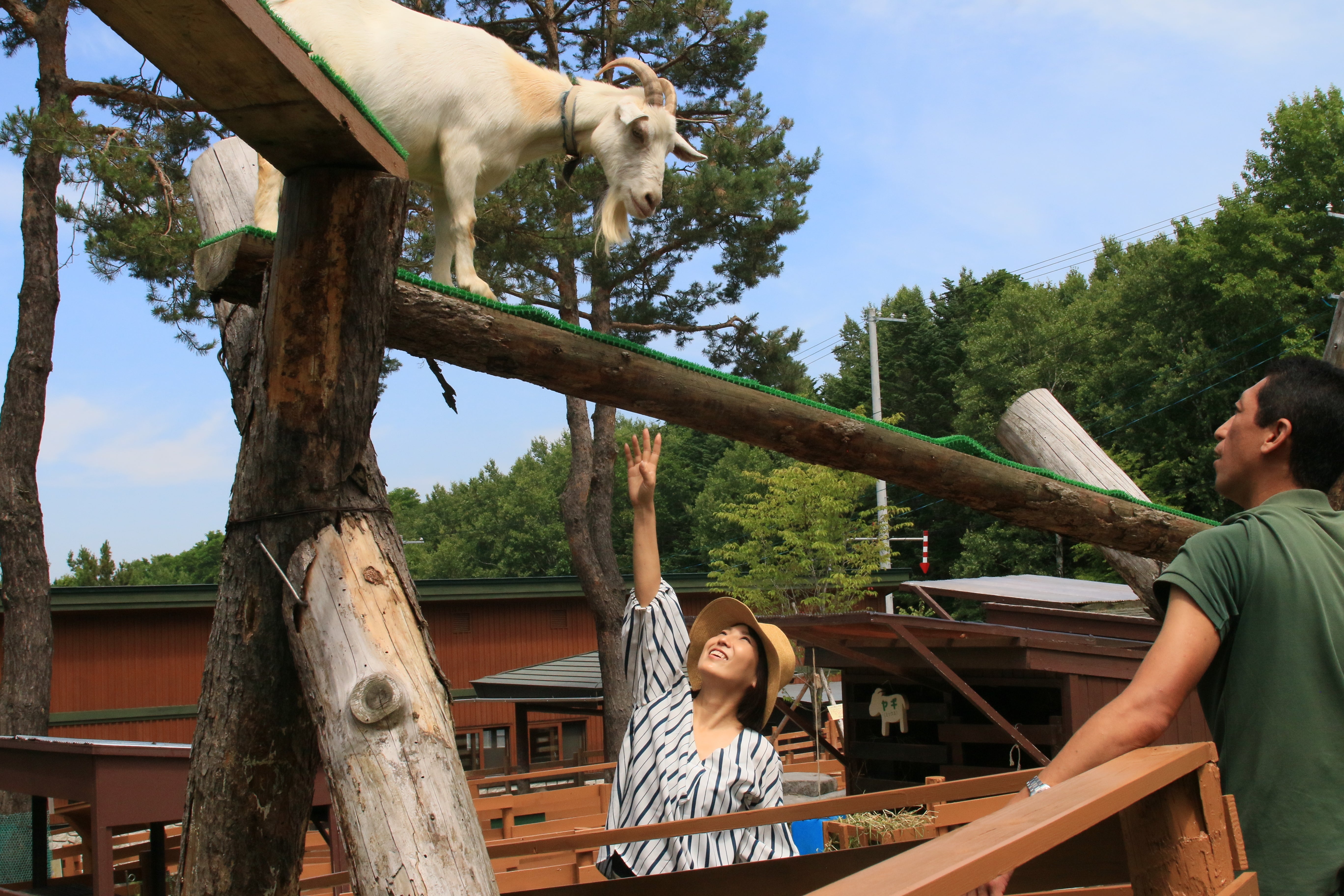 旭山動物園の子ども牧場を担当している飼育係と絵本作家そらさんが