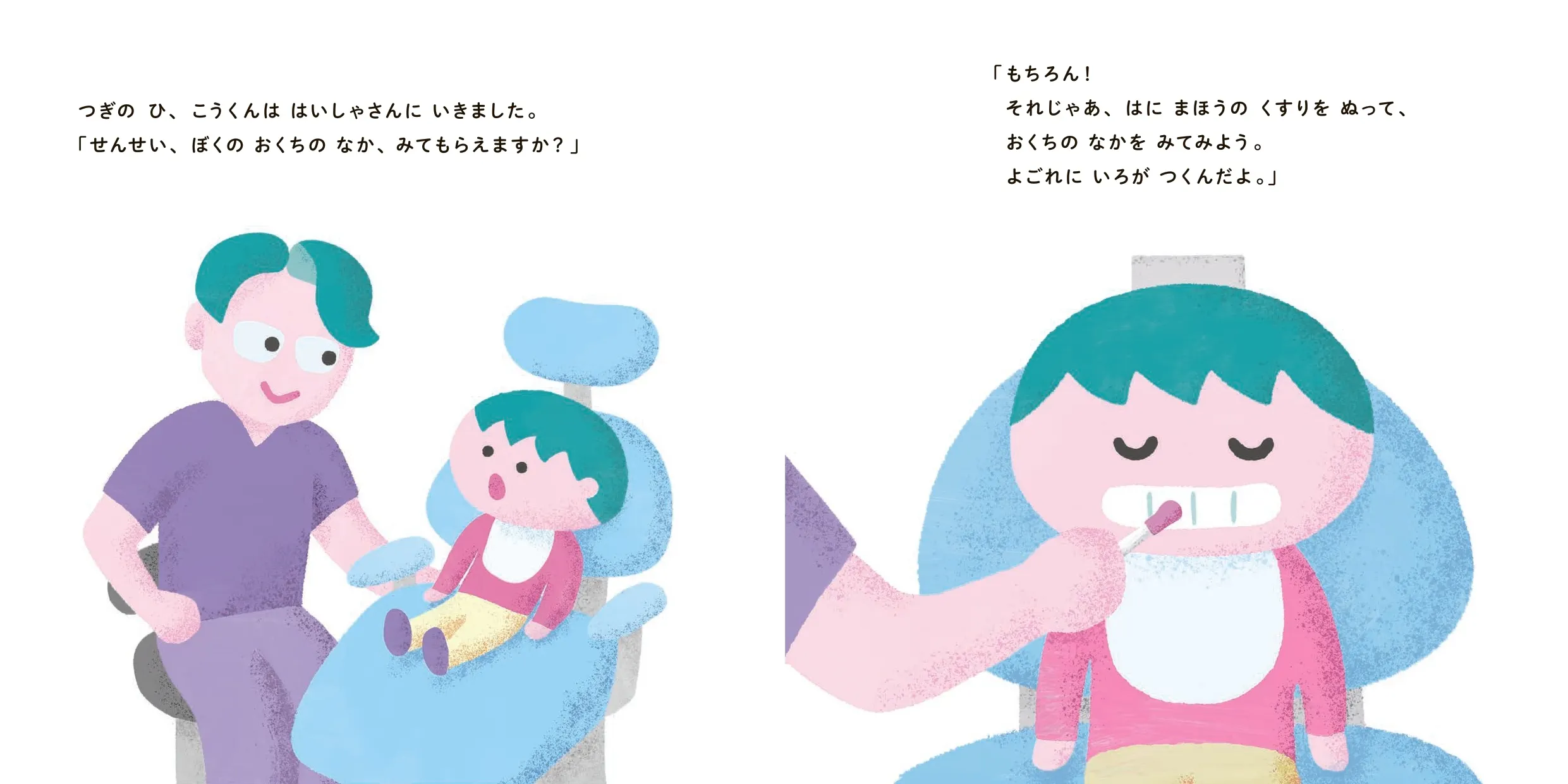そこでこうくんは、はじめて自分の口の中のことを真剣に考えるようになり、歯医者さんを訪れます。