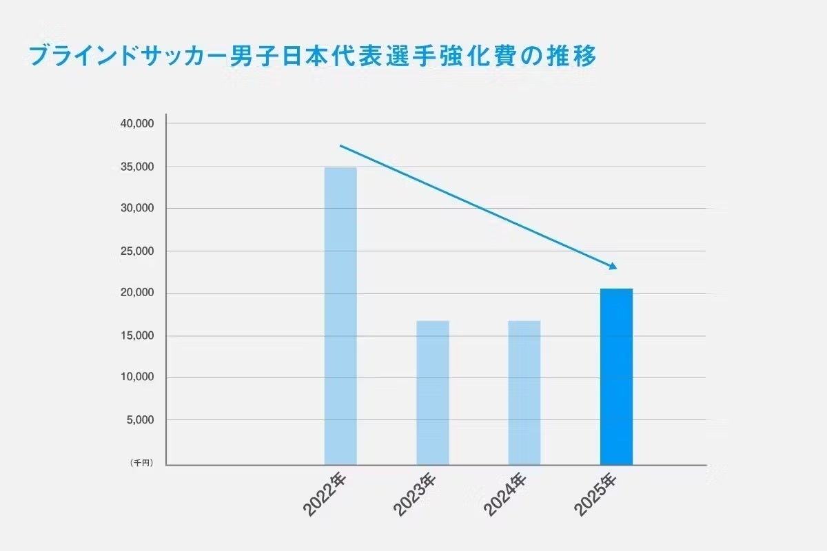 ブラインドサッカー女子日本代表は、2025年5月にワールドグランプリ、10月にインドで世界選手権に挑みます。当初、ワールドグランプリは昨年10月にアルゼンチンで開催される予定でしたが中止となり、代替開催地は日本、開催時期は2025年5月になりました。つまり、女子日本代表は1年で2つの国際大会に出場します。これは異例のことです。強化費は年度ごとに更新されますので、2025年はワールドグランプリの費用が別途必要となっています。