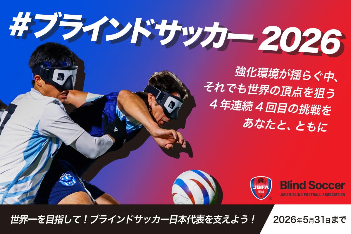 2026/04/17 16:00現在、ダイセル ブラインドサッカーウィーク 2026 in うめきた(大阪市・うめきた広場)で開催中の「IBSA ブラインドサッカー女子アジア選手権 2026 in うめきた」において、女子日本代表が見事2連勝!決勝進出が決定しました!決勝戦情報・4月18日(土)15:00キックオフ・決勝戦:日本 vs グループ2位・観戦無料(一部有料席あり)・会場:グランフロント大阪 うめきた広場ぜひ現地での応援、そしてオンラインでの応援をよろしくお願いします!▶大会HPhttps://blindfootballweek.b-soccer.jp▶ライブ配信(YouTube)https://www.youtube.com/live/kuJ_Qcftdu8?si=Iy08wEnK3IWUjnbfさらに本日より、クラウドファンディング2026(4年連続4回目の挑戦)もスタート!今年はリターンも大幅にパワーアップしています!日本代表の挑戦を、ぜひご支援ください!▶プロジェクトページhttps://camp-fire.jp/projects/927598/view?utm_campaign=cp_po_share_c_msg_projects_show もっと見るブラインドサッカークラウドファンディング2026 リターン品紹介!kura