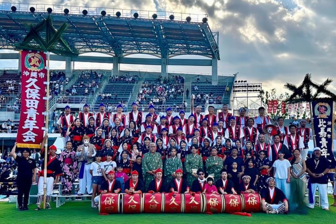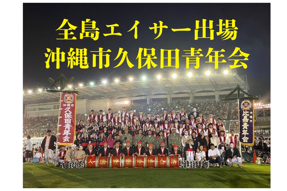 「久保田青年会」は、元は「比嘉区青年会」として戦前から活動を行っていました。ですが、活動が一度途絶え、1978(昭和53)年に復活しました。その後、1990年に行政再編で自治会名が「久保田」へと変わりました。そこから「久保田青年会」としての活動が始まりました。変わってもなお、先人方から受け継いだ比嘉区の魂を消さぬよう、青年会の旗に比嘉区の「比」の文字を残し、今も比嘉区魂を守り続けながら、久保田青年会の新たな歴史を作り続けています。久保田のエイサーは、エイサー曲としてはあまり使用されない琉球古典音楽である「渡りぞう・瀧落菅攪」や「江佐節」、そして久保田のオリジナルの3曲「七月遊び」「守礼の島」「久保田ニーセータ」など、聴きどころ・見所が多く詰まったエイサーです。