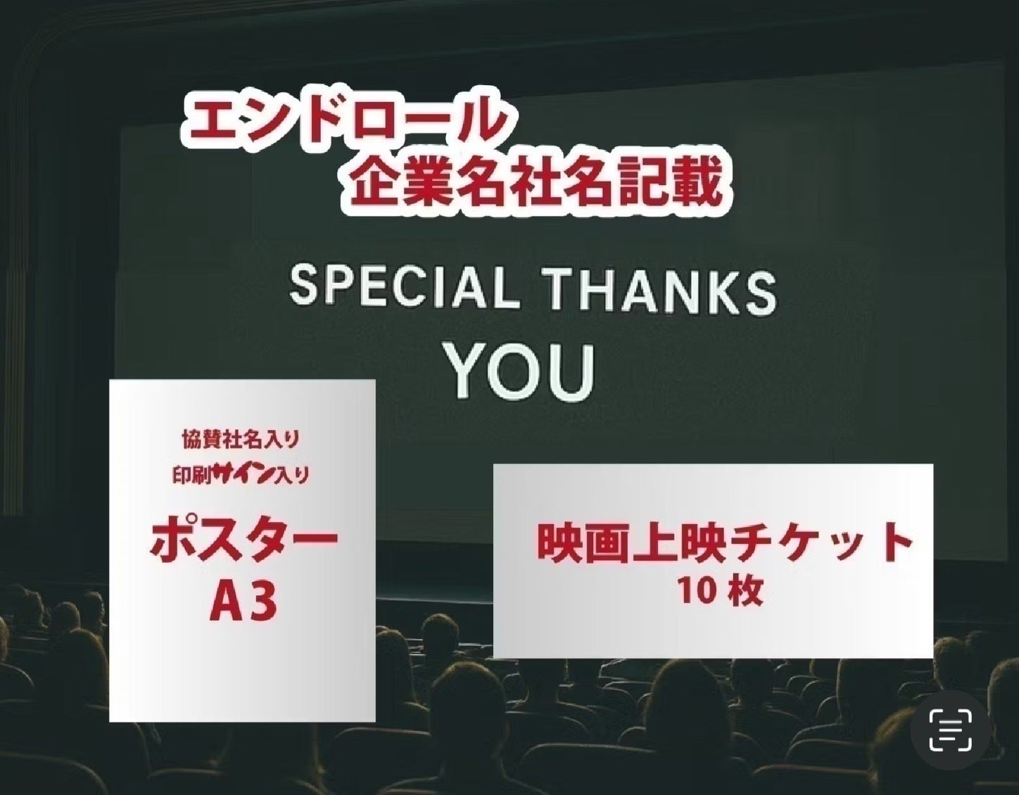 ・映画作品のエンドロールにクレジットをご記載 ※掲載期間:2026年4月(仮)から事業が存続する限り掲載 ※備考欄に必ず掲載希望の企業・団体名をご記入ください