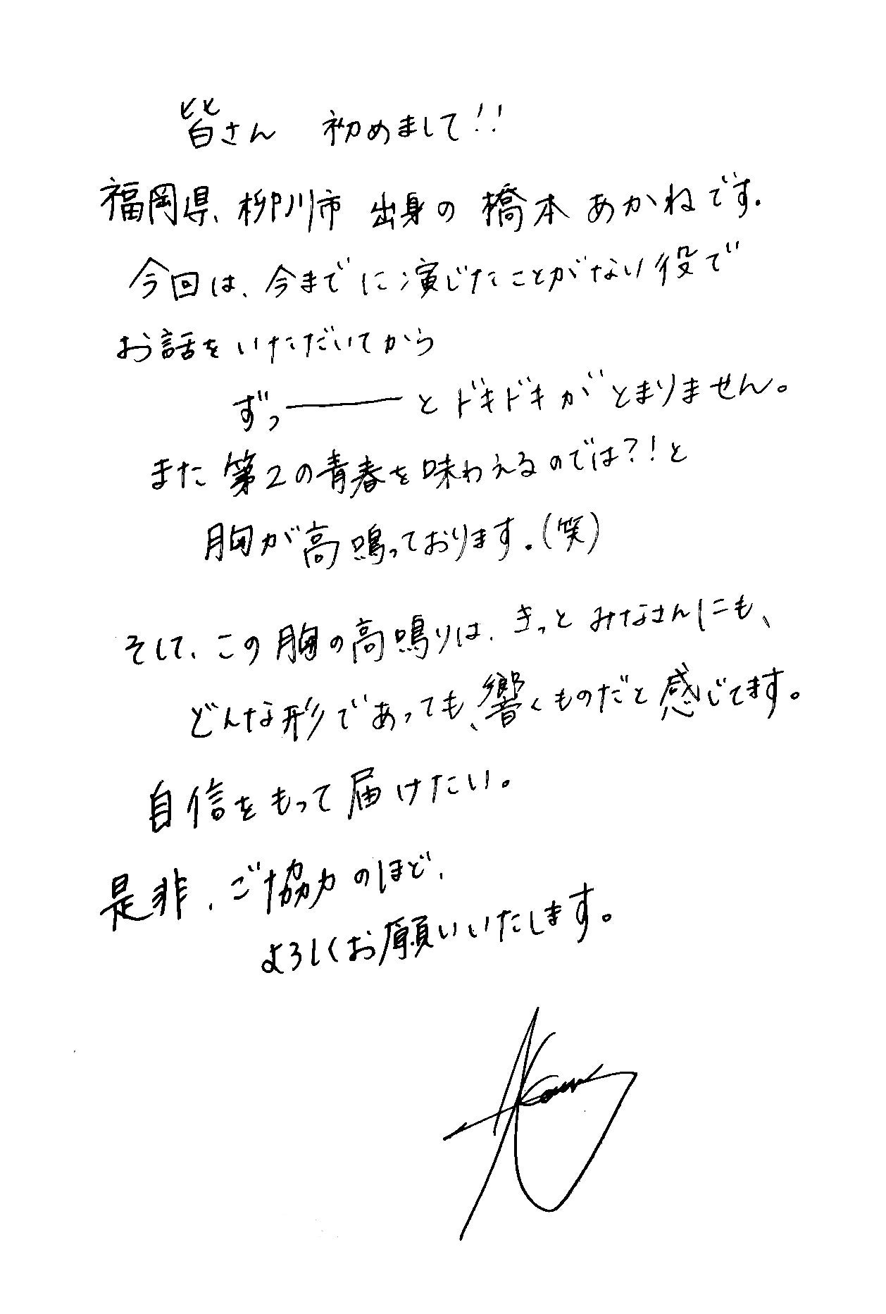 長文ながら読んでいただき、ありがとうございます。「この映画を応援してよかった」と思えるように、出演者・スタッフ一同、この映画プロジェクトに全力で取り組んでおります。皆さまのあたたかいご支援を心よりお待ちしております。