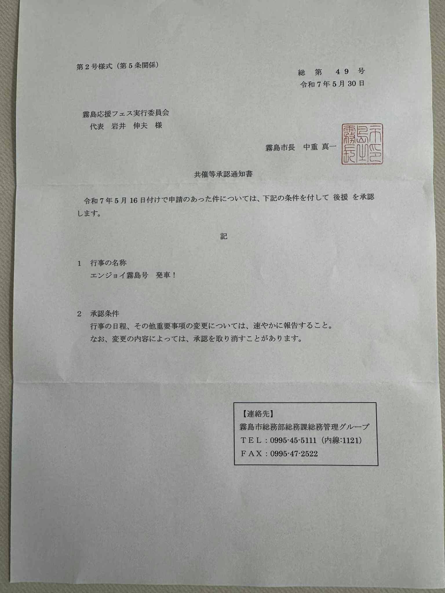 5月 霧島市後援の取得