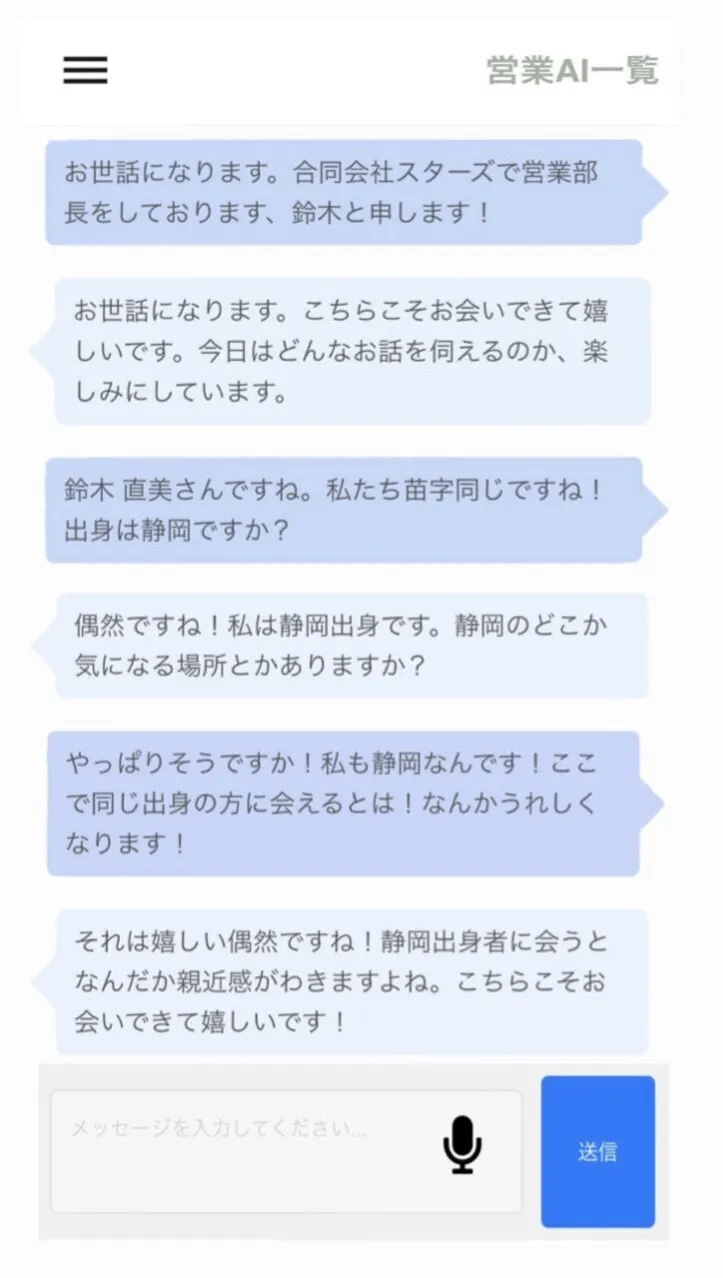 「この前〇〇って言ってたよね」と、AIがあなたの前回の営業内容を覚えていて、“同じ相手に続けて話すような感覚”でトレーニングできたら、すごく自然ですよね。