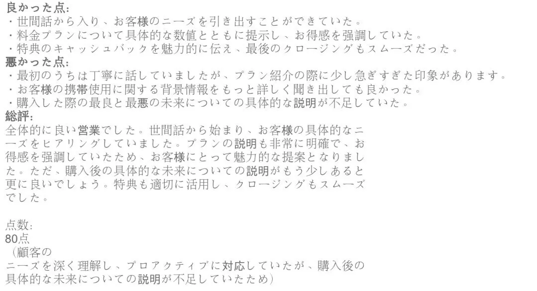 ・AIとの営業ロールプレイ、自然なフィードバック