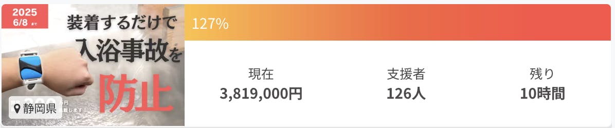 目標金額300万円を掲げて走ってきた今回の挑戦ですが、本日13:30時点で、支援総額は3,814,000円、達成率127%!