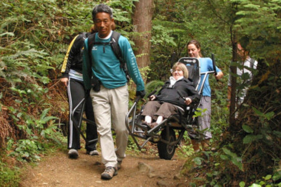 それでも、自然への想いは消えません。そんな中、カナダのBCMOSの「トレイルライダー」という車いすと出会い、希望が湧きました。この車いすなら、私のような重い障害があっても、山に登り、森にも入れる!