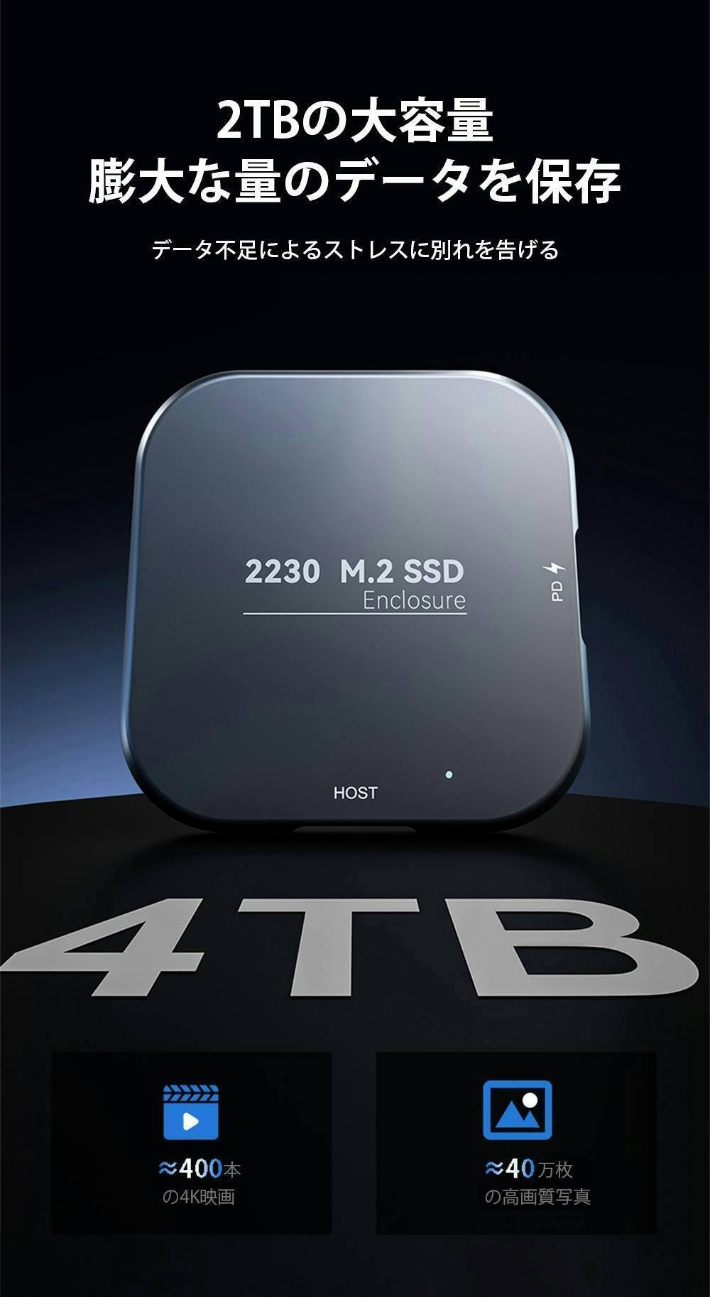 本製品は最大4TBの容量を保存でき、あなたのスマホやカメラ、PCのストレージ不足の悩みを解消します。