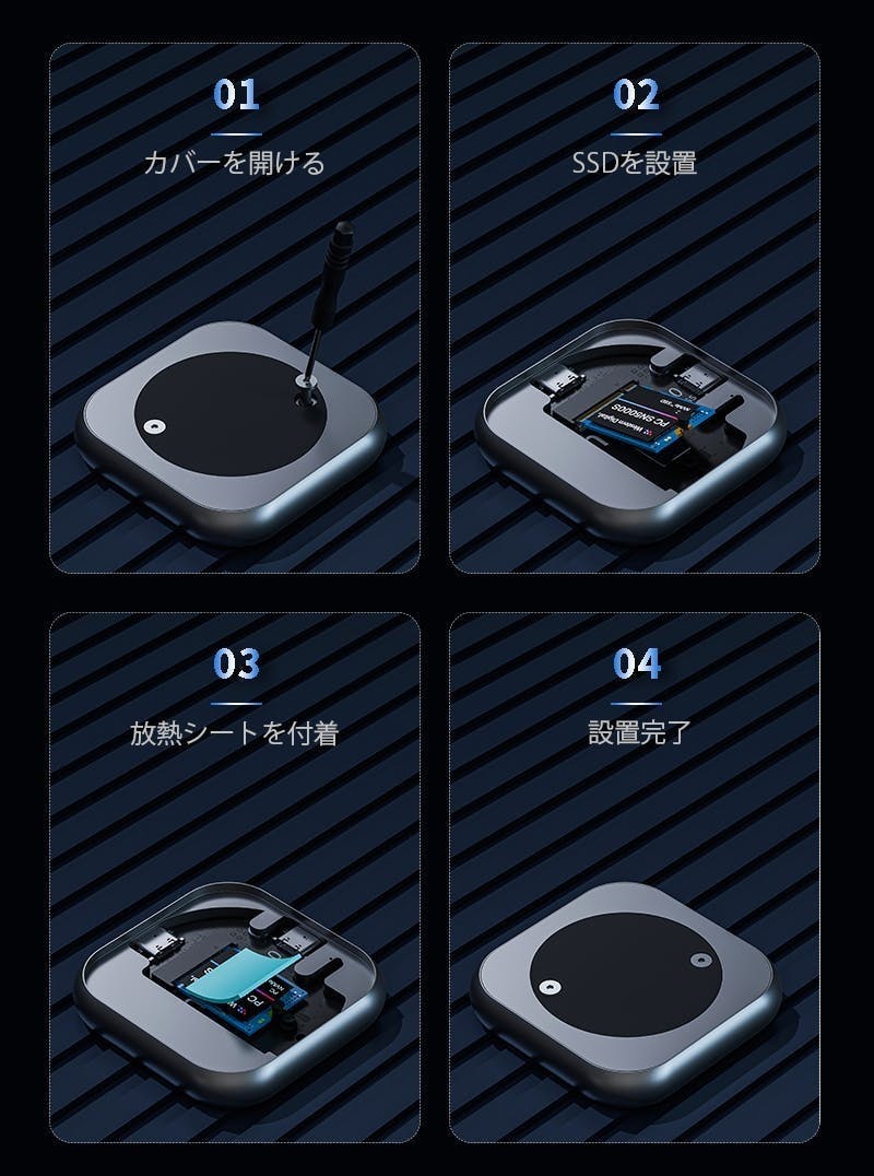 市販でも広く販売されているM.2 SSDに対応しているため、メンテナンスも簡単です。