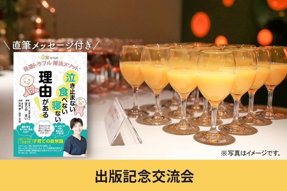 まい先生の書籍「0歳からの発達トラブル解消メソッド」の出版記念交流会に参加できる権利です。