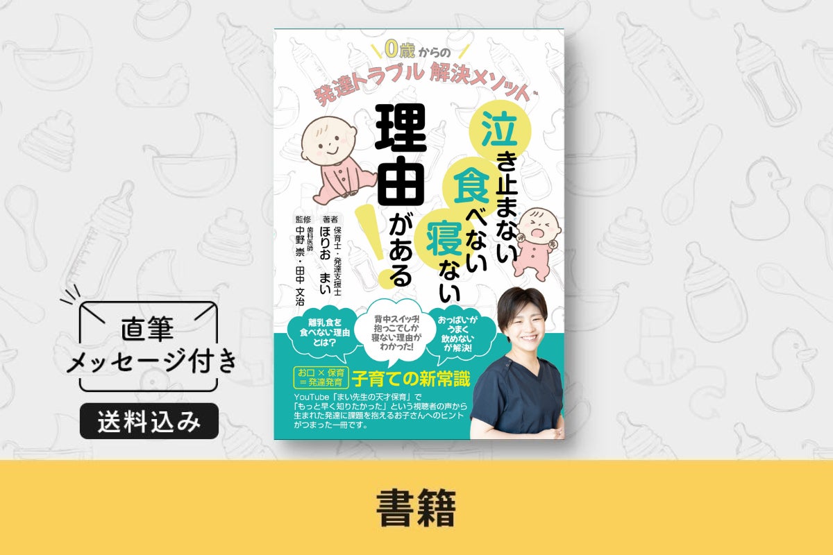 まい先生の書籍「0歳からの発達トラブル解消メソッド」を直筆メッセージ付きでお送りさせていただきます。