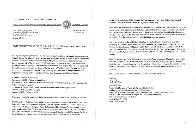 2025/10/01 16:06皆様にご支援賜りました北米公演は無事に全日程終了いたしました。最終日のカリフォルニア大学サンタバーバラ校での演奏会の模様がYouTubeにて配信されております。是非ご覧ください。雅亮会北米公演また現在、新たなプロジェクトを進行中です。こちらにもご支援よろしくお願いいたします。Z世代に天王寺舞楽の魅力を伝えたい もっと見るいよいよ北米公演です!