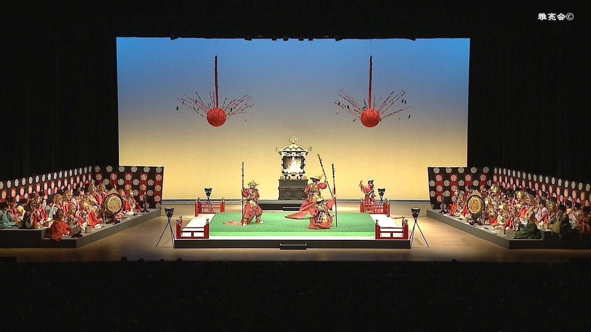 私たちは一般社団法人雅亮会(天王寺楽所雅亮会)と申します。聖徳太子以来の四天王寺の楽団である「天王寺楽所」を受け継ぎ、国の重要無形民俗文化財である「聖霊会の舞楽」(天王寺舞楽)の保存伝承活動を行っています。四天王寺での法要への参仕にとどまらず厳島神社や住吉大社、今宮戎神社への奉納舞楽出仕を行っています。また、文化財公開活動として毎年大阪フェスティバルホールにおいて「雅楽公演会」を開催し多くの聴衆を魅了し続けています。