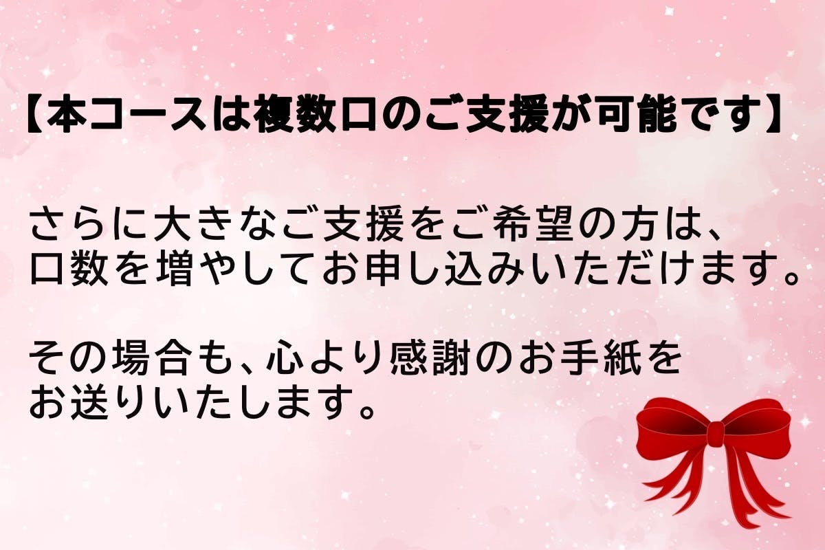• このプロジェクトの趣旨に共感し、より強く応援いただける方のための「お気持ち支援」コースです。
