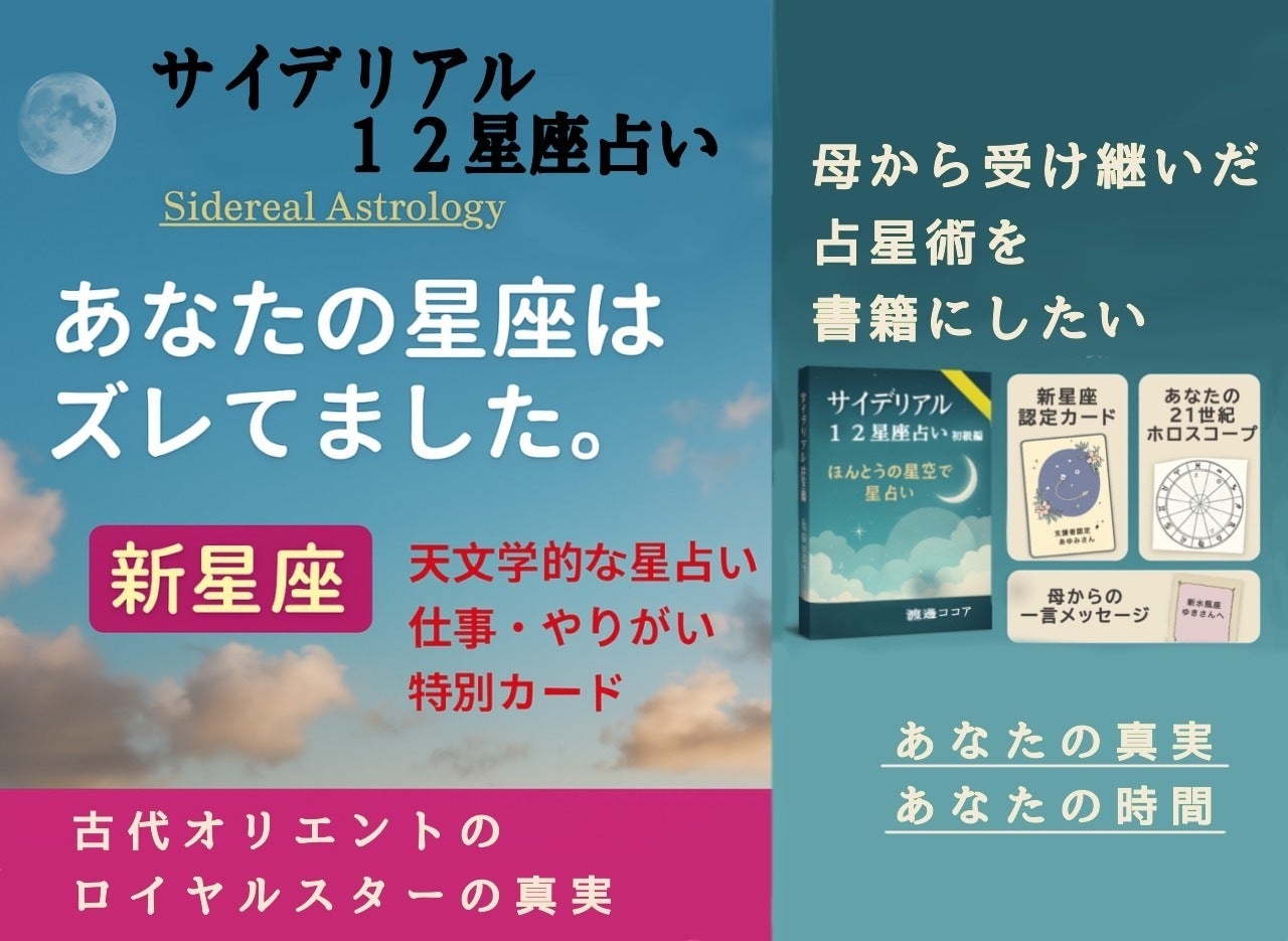 占星術は、一兆円規模の産業といわれており、今だからこそ、この叡智を形にして伝えたいと思いました。サイデリアル12星座占いは、これからの占星術です。