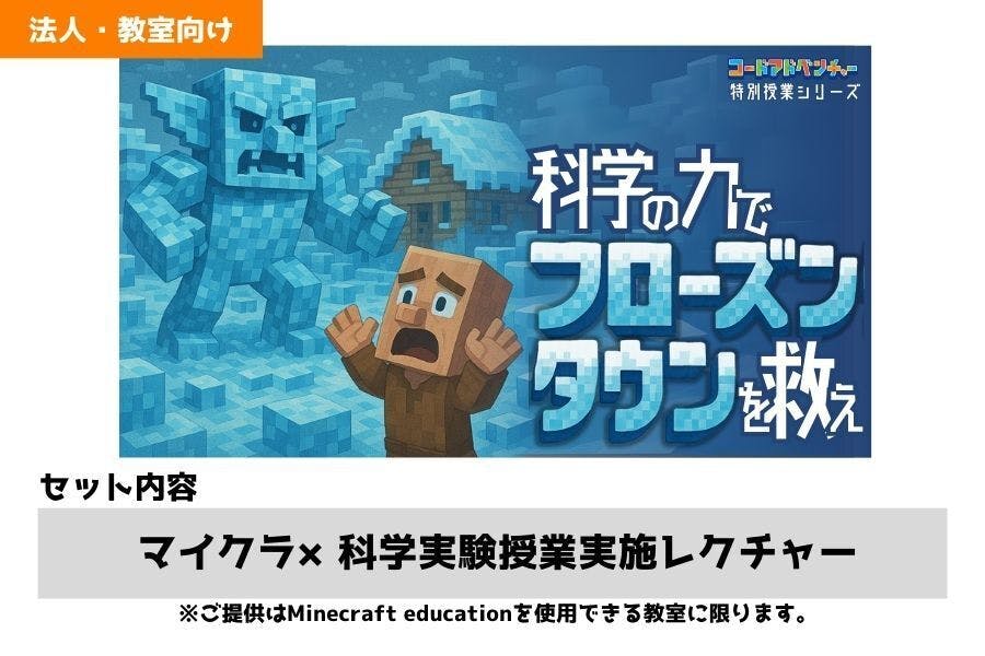 すでにMinecraft: Education Editionを導入されている教育事業者様を対象に、ご自身の教室で「マイクラ×科学実験」授業を実施できるフルセットをお届けします。