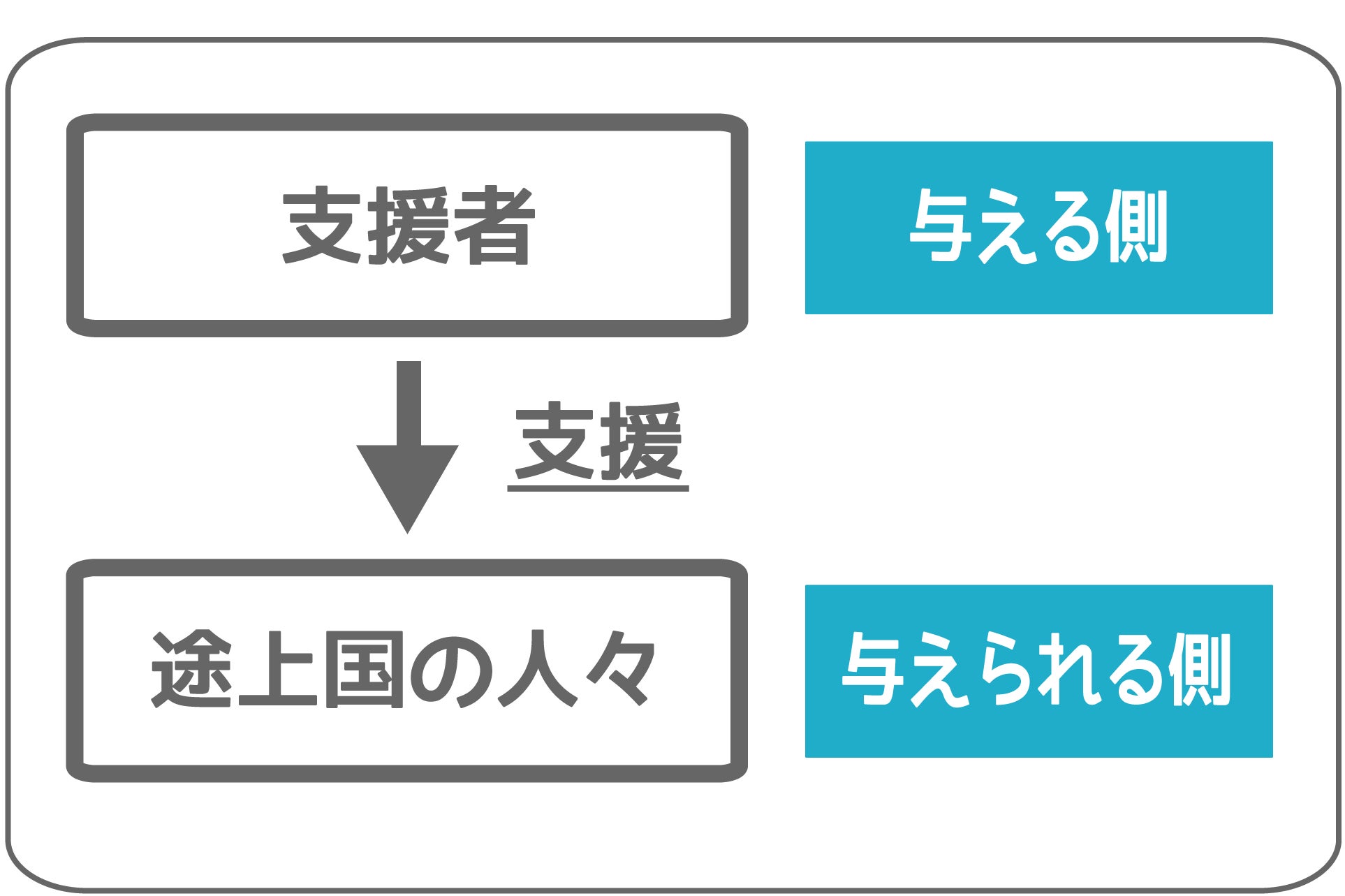 私たちは「与える側」であり、発展途上国の人々は「与えられる側」になります。